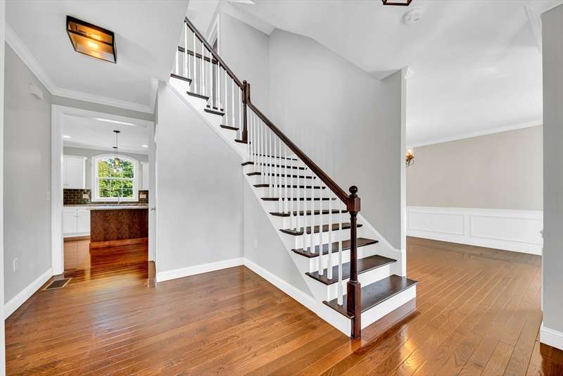 Exquisitely sited on a private 1.74-acre lot in Andover’s coveted South School District, this like-new modern colonial offers the finest in sophisticated luxury. Designed for both elegance & comfort, the open-concept main level is graced with soaring 9’ ceilings, gleaming hardwood floors, & a chef’s kitchen with upgraded finishes flows seamlessly to expansive living & dining spaces. The primary suite features a custom walk-in closet by Closets by Design, while the home’s 4 bedrooms and 3.5 baths include a finished third-floor ensuite with adjoining flexible space ideal for a home office or fitness studio. The finished lower level elevates entertaining with a movie room, game room, & versatile bonus areas. Outdoors, a resort-inspired South Shore gunite heated pool & fire pit anchor the grounds, complemented by a private sports court and ample open space. With town water, sewer, & short drive to downtown, this residence delivers a rare fusion of sophistication & timeless appeal.