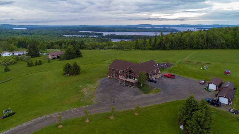 Breathtaking views of Mt. Katahdin and the East Grand Lake Region, the First Settlers Lodge offers a haven from the outside world with first class amenities. An unparalleled 42 acre private estate or commercial venture on US-1. Bordered by permanent conservation land, this four season sanctuary guarantees ultimate privacy and endless adventures. A place to reconnect with family, friends, guests or nature whether sitting by the fireside or out on the direct trail access with hiking boots, snowshoes, cross country skis, ATV's, ITS trail for snowmobiles or your favorite rifle during hunting season. East Grand Lake is renown for its world class fishing and boating. The four season lodge has something for everyone...reunions, retreats, celebrations, meetings, fishing, hunting, or the forgotten art of relaxing. The lodge offers a main residence plus a guest wing, perfect for multigenerational living or a commercial entity while living on site. It includes 6+ bedroom suites, each with a private bathroom, plus a large bunk loft for gatherings. A stunning chef's kitchen with commercial-grade appliances, dining room, a great room with a fieldstone fireplace and pellet insert. The guest rooms are in a separate wing, while the upper level overlooks the great room, plus a guest room with full bath and deck offering views of East Grand Lake. The lower level offers a specious meeting or event room along with private living space for the owners and an in-law apartment. This is a turn key property, fully furnished and equipped for a seamless transition. Some of the features included are a 2023 Chevy 2500 Duramax truck with a Boss plow, Polaris Ranger UTV, & multiple trailers. Enterprise-grade UniFi WiFi 6, security camera system, and dedicated AC units for all suites. Three large outbuildings (two 10x30, one 10x20) for all your storage needs. A true legacy property combining total privacy, modern comfort, & direct access to the best of Maine's outdoor recreation. View MLS#1641418