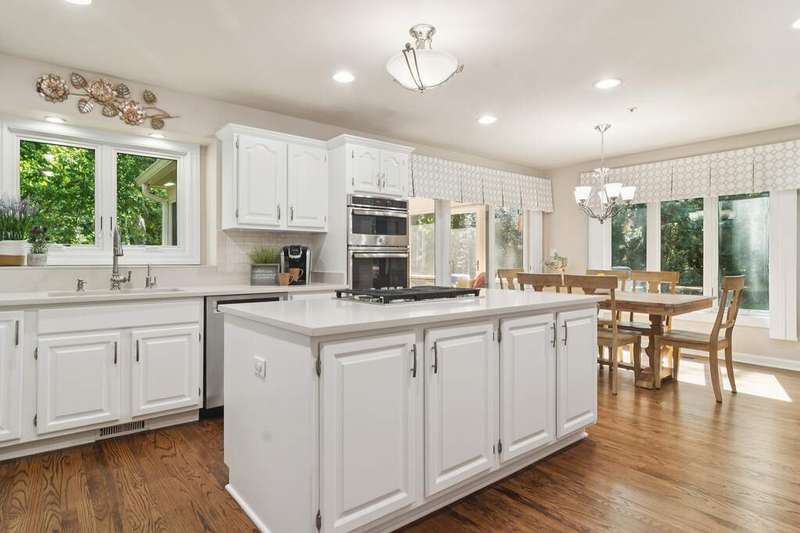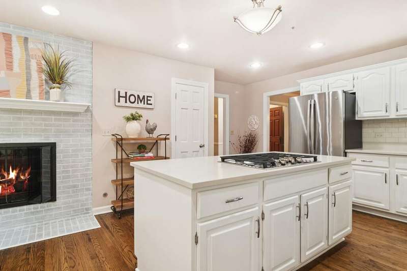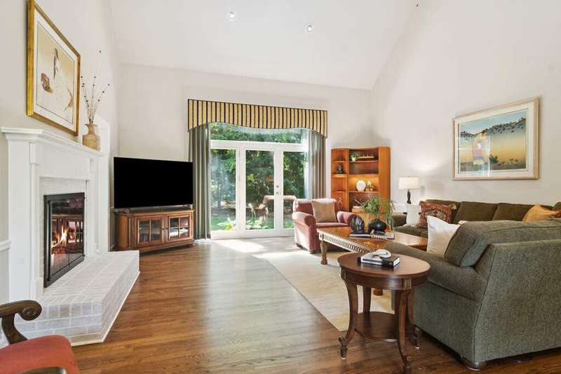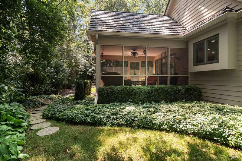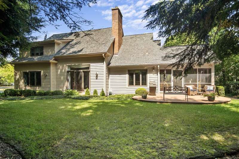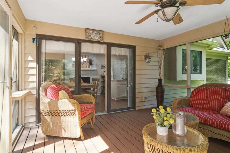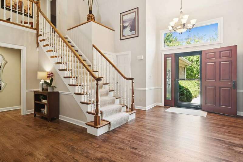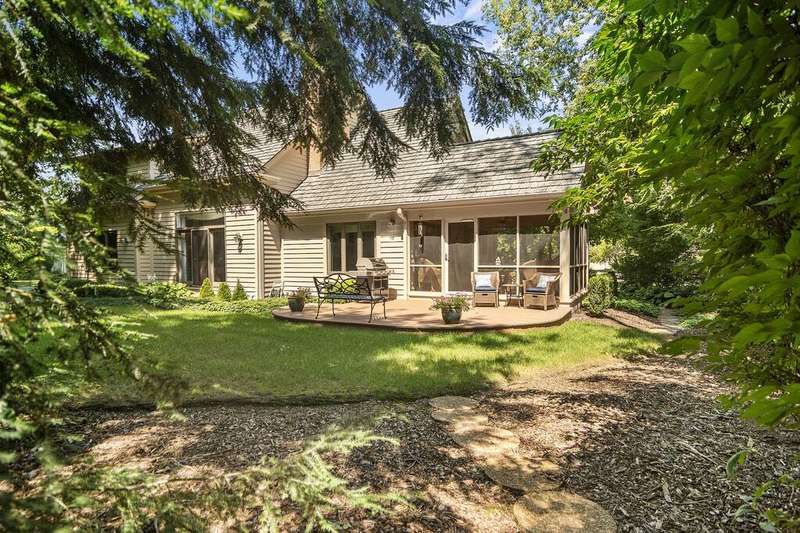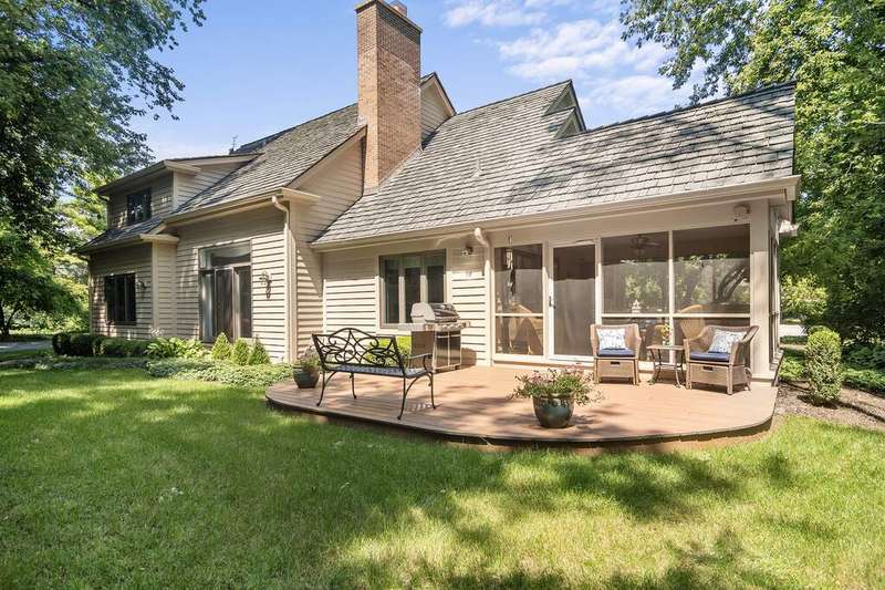 Welcome to 4612 Forest Way Circle, nestled in the sought-after Fields of Long Grove. Perfectly set on a professionally landscaped lot, this inviting home offers a spacious family room with soaring ceilings and a charming see-through fireplace. The FIRST FLOOR primary suite is a true retreat, featuring a remodeled bath boasting a whirlpool tub and separate shower and dual sinks. There are generous closets and a fabulous view of the outdoors. The kitchen is a chef's delight, with GE Profile appliances (2019), a newer KitchenAid dishwasher (2023), quartz countertops, and the cozy ambiance of the two-sided fireplace. Enjoy casual meals with plenty of table space and beautiful views or step through the slider to the screened porch, where you can rest, relax and enjoy the soft breeze. Composite flooring and a ceiling fan make it the perfect spot to enjoy the seasons. Make your way upstairs to the second floor, where you will find two generous sized bedrooms, as well as a spacious and bright hall bath. The finished partial basement adds versatility with a recreation room-currently being used as an office-along with storage and utilities. This home has been thoughtfully updated, including a NEW Cedar Shake Roof (2021, preserved in 2025), Andersen windows (2020), refinished hardwood floors (2024), new fireplace (2024), garage floor (2019), and a Trex deck patio (2020), and so much more. Look no further! You have arrived!