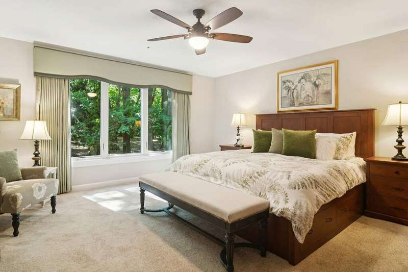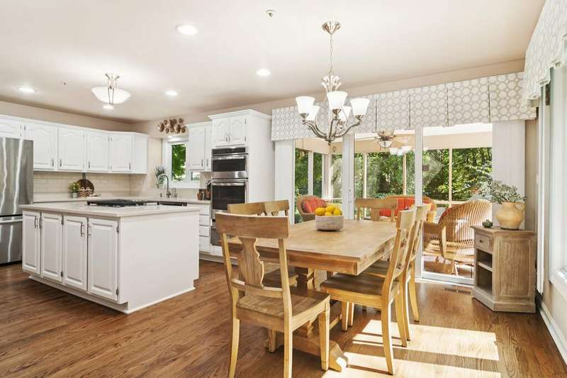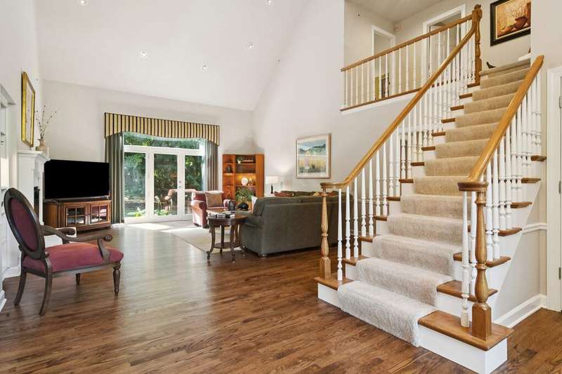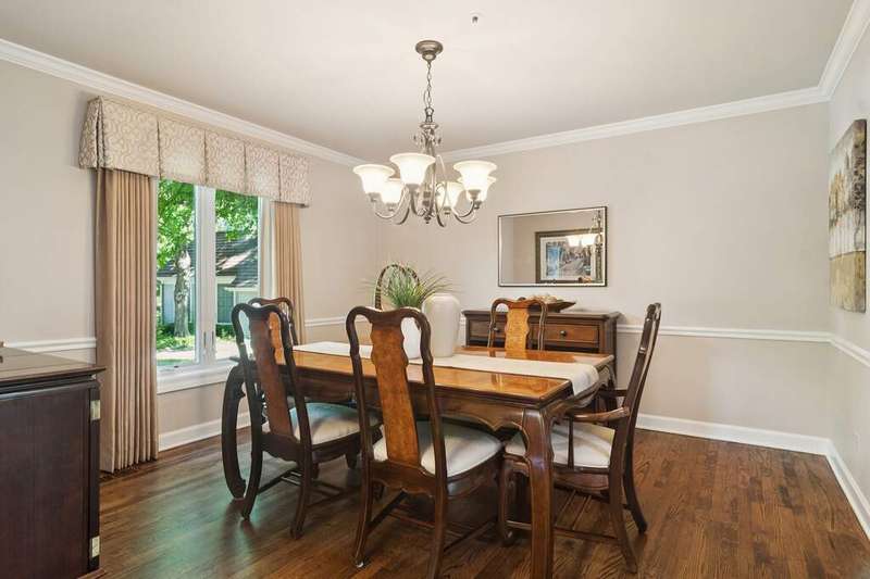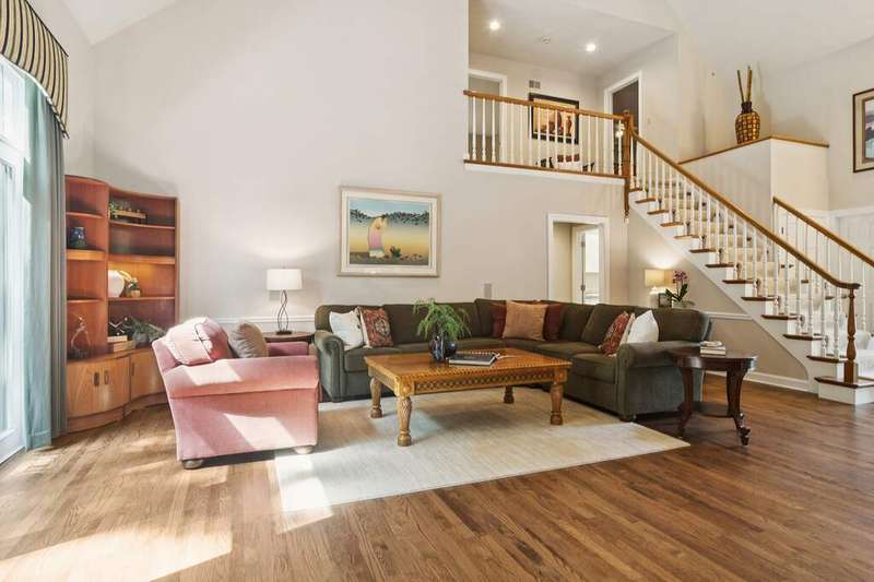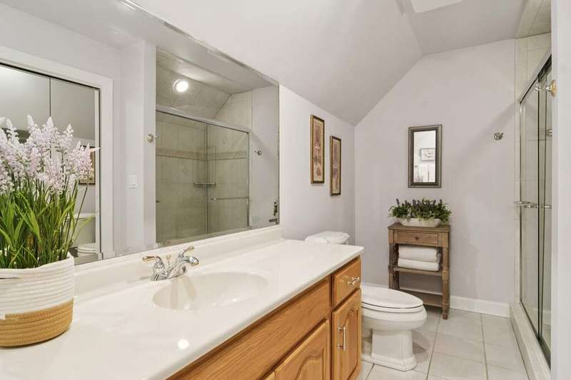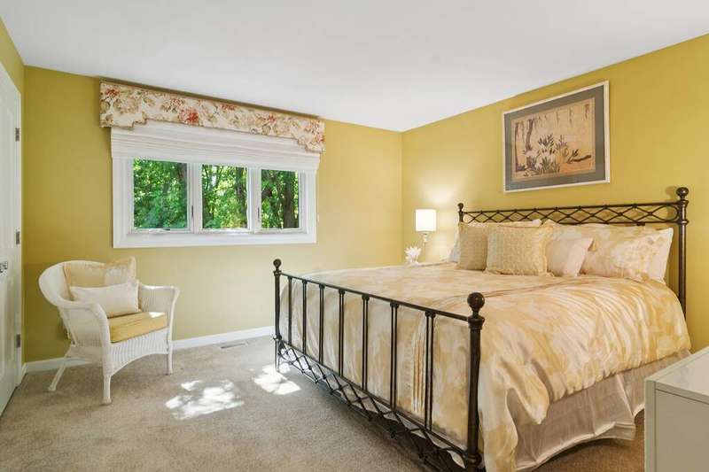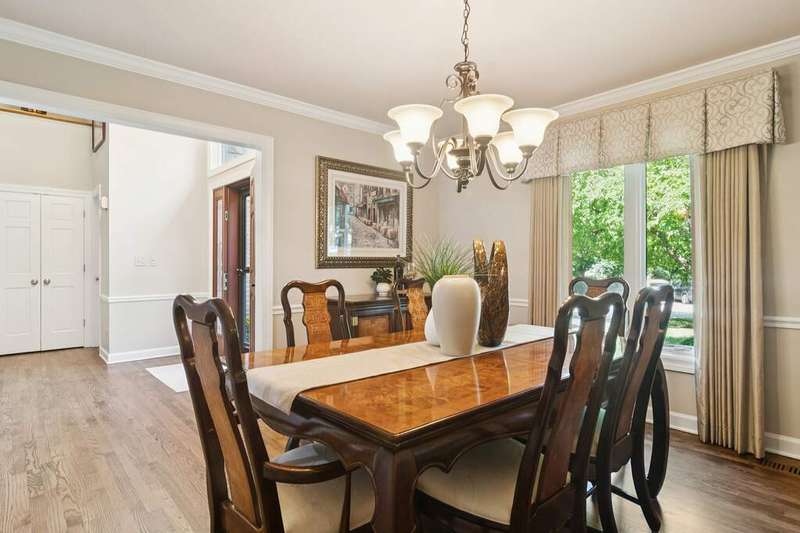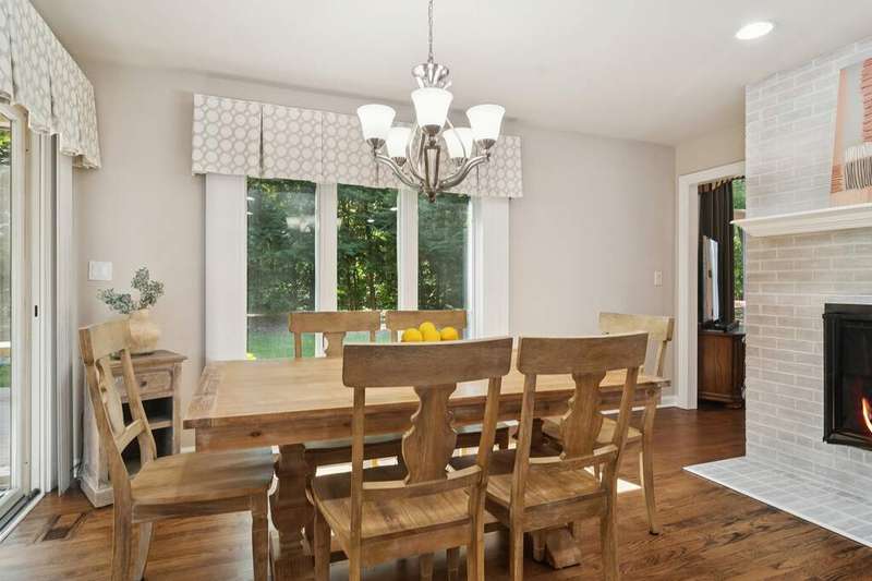 Welcome to 4612 Forest Way Circle, nestled in the sought-after Fields of Long Grove. Perfectly set on a professionally landscaped lot, this inviting home offers a spacious family room with soaring ceilings and a charming see-through fireplace. The FIRST FLOOR primary suite is a true retreat, featuring a remodeled bath boasting a whirlpool tub and separate shower and dual sinks. There are generous closets and a fabulous view of the outdoors. The kitchen is a chef's delight, with GE Profile appliances (2019), a newer KitchenAid dishwasher (2023), quartz countertops, and the cozy ambiance of the two-sided fireplace. Enjoy casual meals with plenty of table space and beautiful views or step through the slider to the screened porch, where you can rest, relax and enjoy the soft breeze. Composite flooring and a ceiling fan make it the perfect spot to enjoy the seasons. Make your way upstairs to the second floor, where you will find two generous sized bedrooms, as well as a spacious and bright hall bath. The finished partial basement adds versatility with a recreation room-currently being used as an office-along with storage and utilities. This home has been thoughtfully updated, including a NEW Cedar Shake Roof (2021, preserved in 2025), Andersen windows (2020), refinished hardwood floors (2024), new fireplace (2024), garage floor (2019), and a Trex deck patio (2020), and so much more. Look no further! You have arrived!