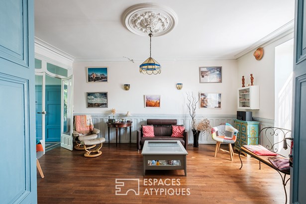 A stone's throw from the medieval center of Parthenay, nestled in a peaceful street, this majestic late 19th-century bourgeois residence displays the refinement of its past, when it belonged to a local timber merchant.