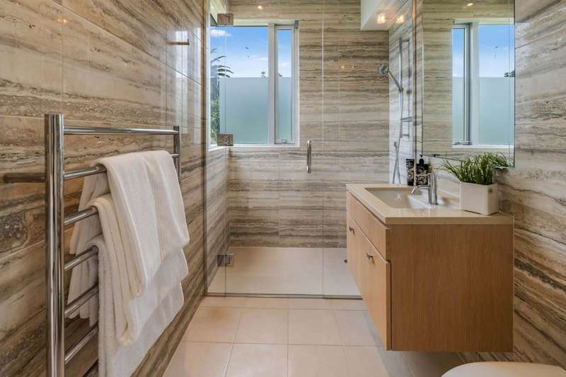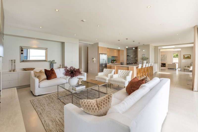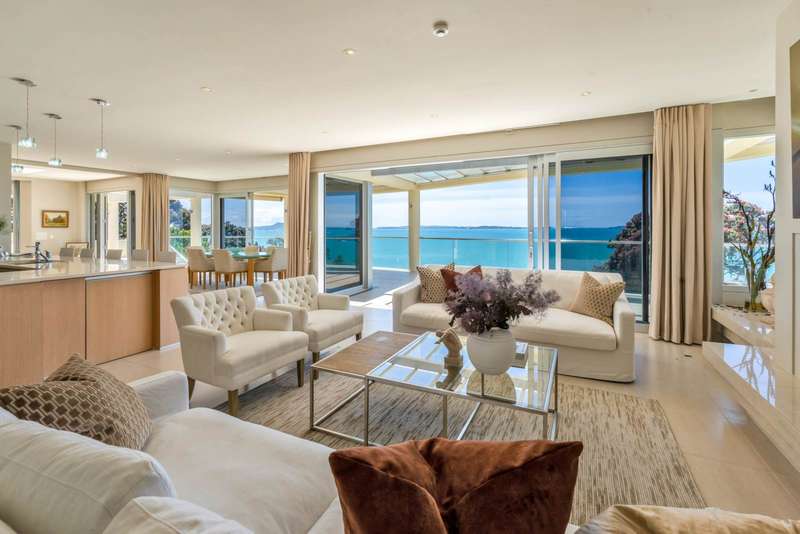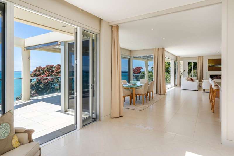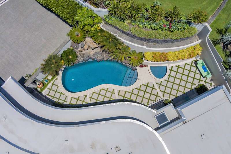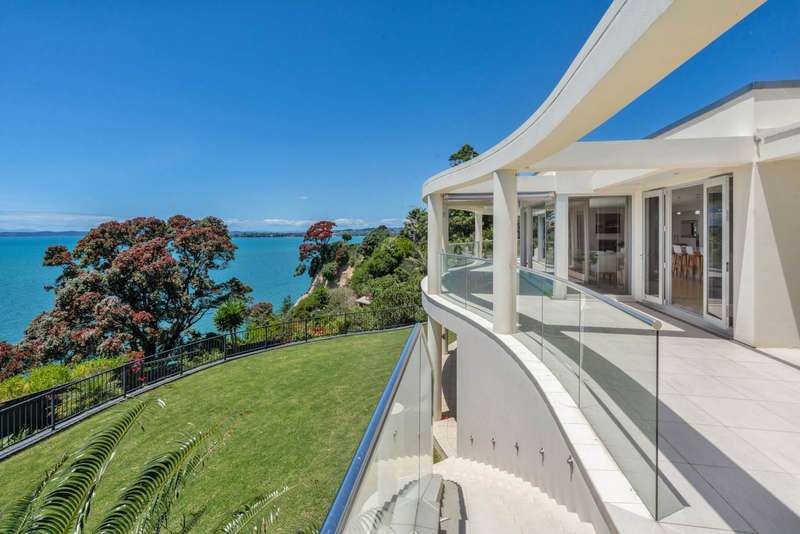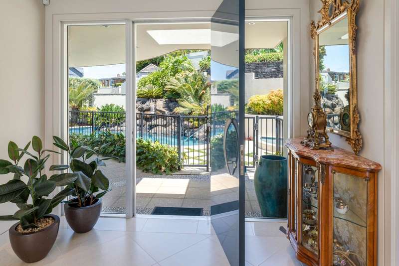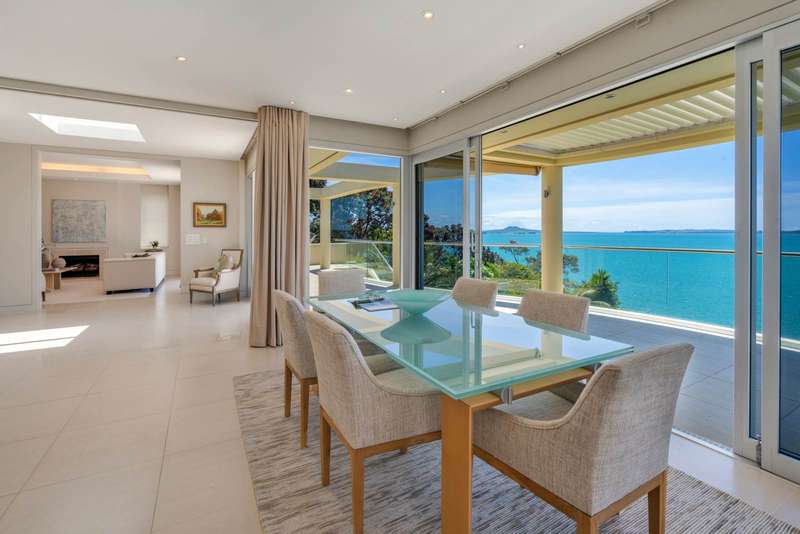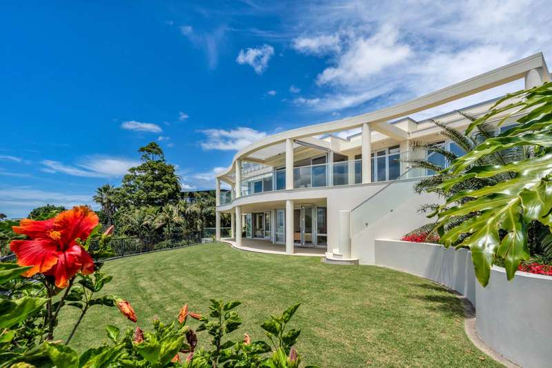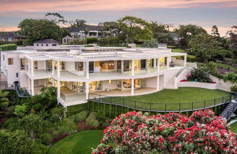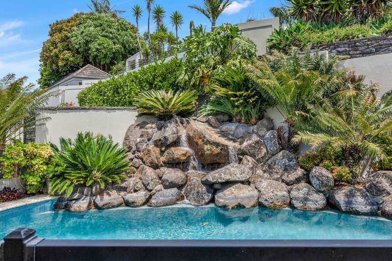 Timeless and unique, this substantial masonry home on a breathtaking 2168sqm coastal paradise boasts panoramic ocean and gulf views that reach to the horizon. Don’t even try to compare it with anything else. For this exclusive resort-like property is prized, not just for its beauty, privacy and incredible outlook. It comes with an impressive pedigree. The grand yet understated home was built for permanence to the highest quality possible by the well-known Stevenson family who farmed the original land on the site. They were also owners of one of Auckland’s earliest large-scale construction and concrete companies. Having unlimited resources to create a stunning architectural home of outstanding quality, they selected this specific site. Still owned by the same family, it is without doubt the finest waterfront viewing point in Cockle Bay. The premium position lets owners enjoy absolute seclusion immersed in serene beauty. Renowned architect Linda Clapham worked with the family to design an exquisitely detailed home. Faced with schist exterior walls, in magnificent tropical gardens and terraced lawns, it provides fantastic versatility for family and friends as it is split over 2 floors, future-proofed with a lift. Most rooms, including 4 generous bedrooms, open to huge sun-kissed, sheltered north-facing terraces catching unobstructed views. Sun also pours across the tropical pool area where a waterfall tumbles over enormous rocks. From the voluminous skylit entry, expansive living areas across the main level are filled with sunshine and warmth. Due to the home’s construction and northerly aspect, it is always cosy in winter. A large, understated, central timber kitchen with scullery offers fantastic entertaining possibilities. There’s a library/office and elegant built-in cabinetry reaches the full stud height. Downstairs incorporates 2 more bedrooms and a kitchenette, making life easy for family, guests or a nanny. Storage is copious and numerous utility rooms plus 3 car garaging provide ample utility space. Immaculately presented, a substantial home of rare quality, hidden on the most sublime coastal estate, a mere half hour drive from the CBD and 5 minutes to charming Howick Village. Make Auckland’s finest property yours!