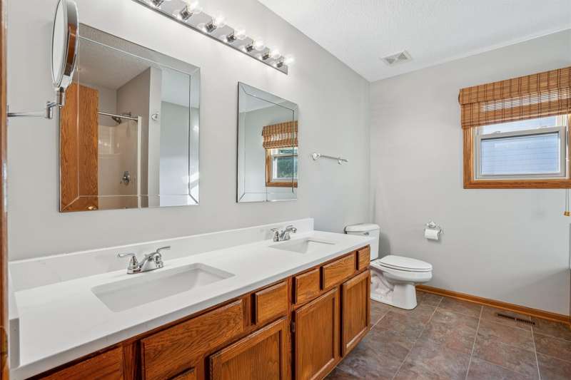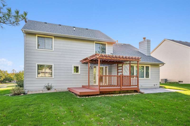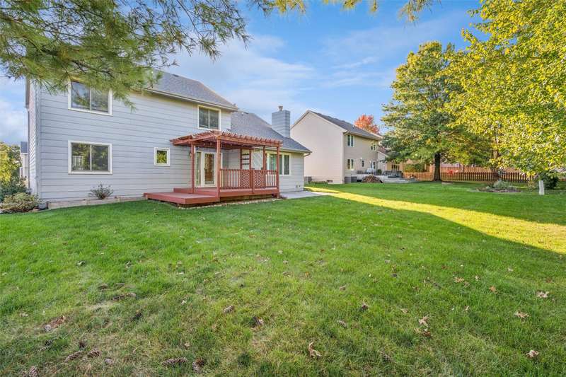 There is a lot of New in this Beautiful 4 BR 2 story home! In 2025 new roof, all new interior paint (Agreeable Gray) with closets painted as well, and all new carpet! Other recent updates have been quartz counter tops in the kitchen, tiled backsplash, faucet, stainless steel appliances, quartz tops in the coffee bar/desk area & quartz tops in the primary bath. In the past years, HVAC was replaced, Leaf Filter gutter system and Andersen windows were installed. With 2400+ sq ft of finish, which includes an office w/built-in cabinetry, formal living room or 2nd office, formal dining room, family room w/gas fireplace, main flr laundry, powder room, 2 closets, pantry & kitchen on the main floor. Upstairs is a large primary bedroom w/ensuite: jetted tub, shower, double vanity & custom closet. 3 more spacious bedrooms & a full hall bath complete the 2nd floor. The basement has tall ceilings for easy finishing, an egress window & utility sink. The deck, pergola and patio extend your outdoor living pleasure and have quite a bit of shade. The 3-car attached garage is a bonus and the professional landscaping and lawncare make this a standout! This home is located in the Waukee School district and is close to bike trails, schools, churches & shopping.