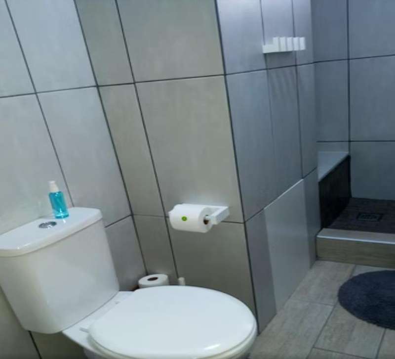 The bathroom is lovely, modern and has a combination of an overhead and handheld shower, as well as a toilet and basin.