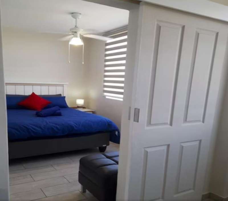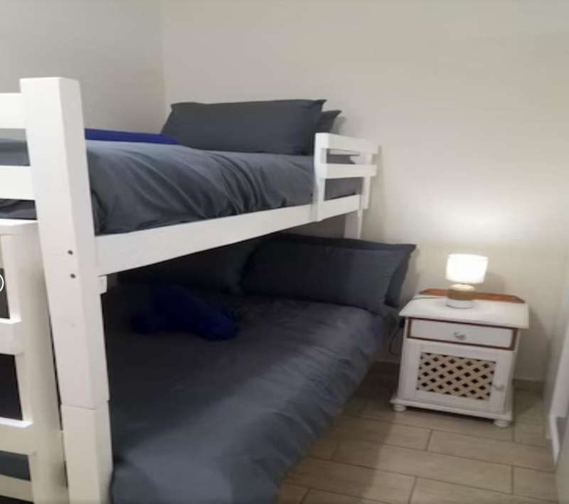 The apartment has two bedrooms, both of which have built-in cupboards. One of the bedrooms has single bunk beds, making it perfect for families with small children or groups of friends. The other bedroom has a luxurious queen size bed, perfect for a couple or solo traveller.