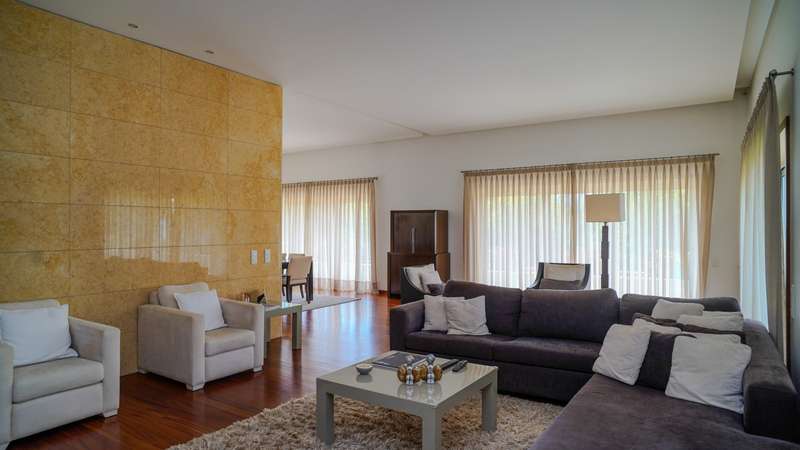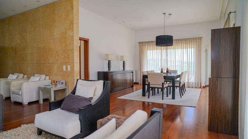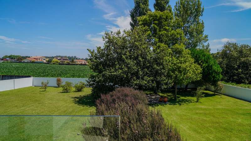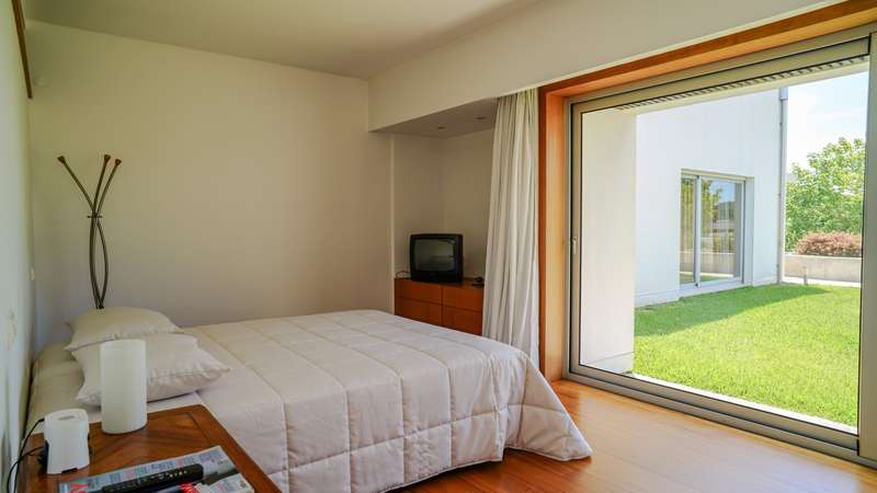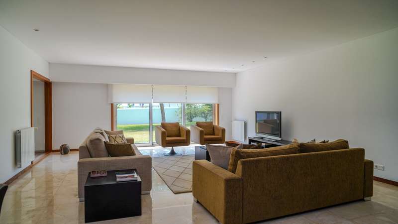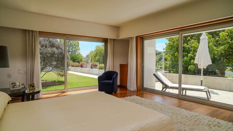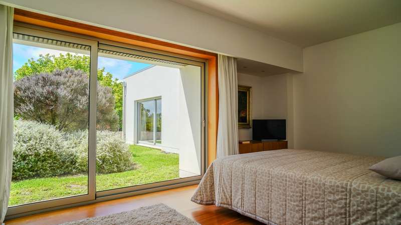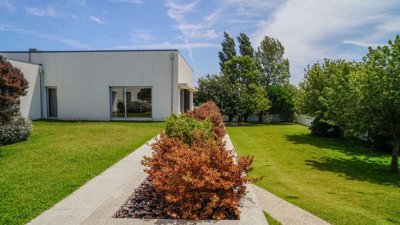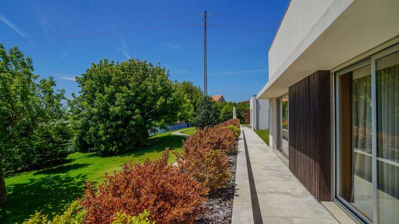 Contemporary architecture villa in a quiet residential area in Póvoa de Varzim. Consisting of just two floors, the first floor has a large social area with a living and dining room, a fully equipped kitchen, an office and four suites, all with access to the outside garden. On the basement level, with direct access to the well-kept garden, there is a wellness and leisure area with a heated indoor pool, a pool toilet, a games room, a suite and a garage with capacity for five cars. Classic, top-quality finishes characterize this property, such as the wooden floors and marble applied to large areas of the villa. Located in a quiet and bucolic area, but at the same time close to schools, hypermarkets, hospitals, 10 minutes from the center of Póvoa de Varzim and 25 minutes from Porto. CHARACTERISTICS: Plot Area: 4 408 m2 | 47 443 sq ft Deployment Area: 490 m2 | 5 273 sq ft Building Area: 765 m2 | 8 231 sq ft Bedrooms: 5 Bathrooms: 7 Garage: 5 Energy efficiency: B FEATURES: Central heating; Central vacuum system; Heated indoor swimming pool.