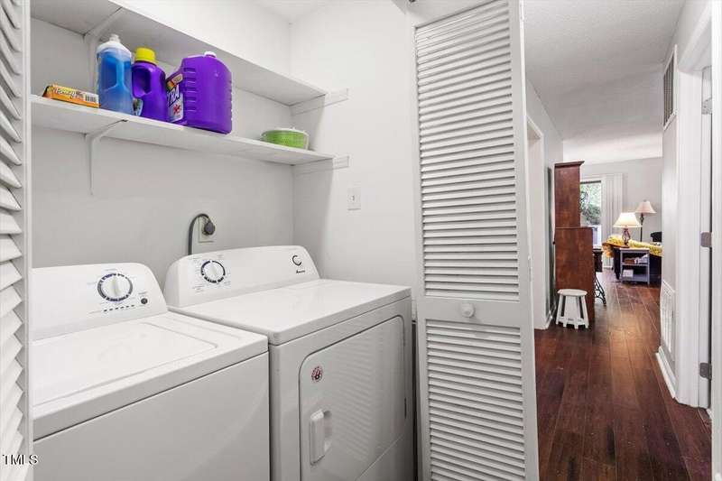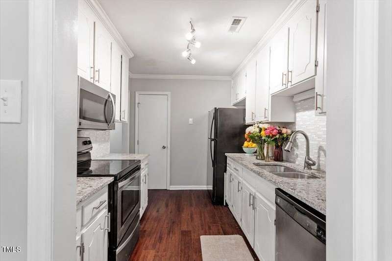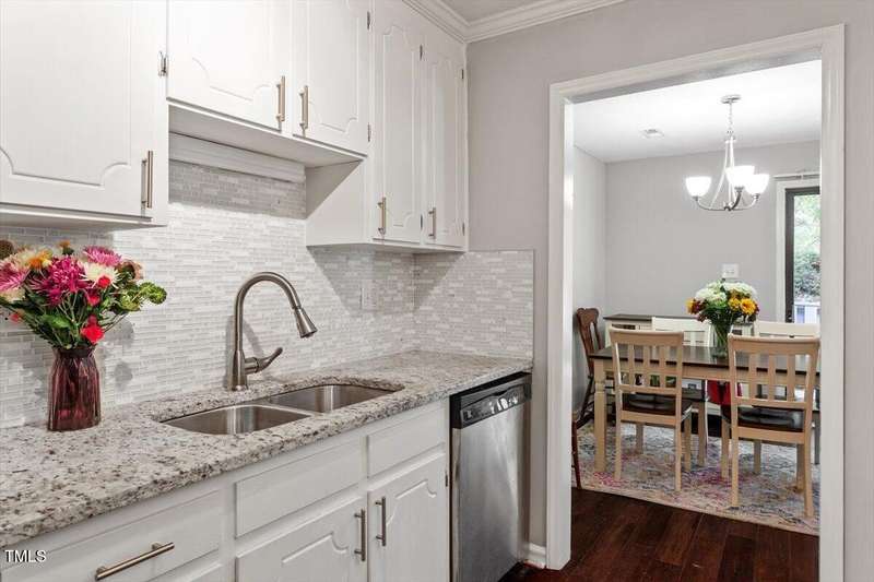 Low maintenance one-level living. Fresh carpet & interior paint. 2 Bedroom with 2 full baths. Ultimate location in the heart of Cary. Walk to Trader Joes, Aldi, Barnes & Nobles, great restaurants. Minutes to Koka Booth ampitheater, downtown Cary, medical facilities, and Waverly Place. Open flowing floorplan with hardwood floors fills with natural light, great for entertaining. Updated gourmet chef's kitchen with granite countertops tile backsplash, SS appliances, and large pantry. Large breakfast / dining area. Private patio with fence and storage room. Spacious primary suite has 2 closets and private bath. Generous guest suite with full hall bath. Newer roof, and water heater. Refrigerator & washer / dryer convey.