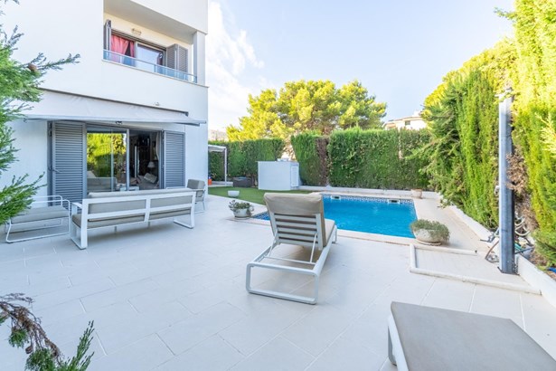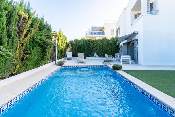 Located in the sought-after residential area of Ses Cadenes, in Playa de Palma, this semi-detached house stands out for its strategic location, just a few minutes' walk from the beach. Surrounded by amenities, green areas, and with excellent connections to Palma city centre and the airport, it is ideal as a permanent residence or holiday home.~~Distributed over two floors, the property offers a built area of 140?m² with well-defined spaces. The main floor opens to a bright living area with direct access to the garden, while the upper floor features two double bedrooms with balconies and two bathrooms. Parquet flooring and Climalit-style double-glazed windows ensure comfort and insulation.~~The outdoor area is designed to enjoy the Mediterranean climate, with a terrace, private garden, swimming pool, and a chill-out area. Its southwest orientation guarantees natural light throughout the day. The property also includes a private parking space.~~In good condition, this home is a great opportunity for those seeking peace by the sea, or for investors looking to purchase in one of Mallorca’s most in-demand areas.