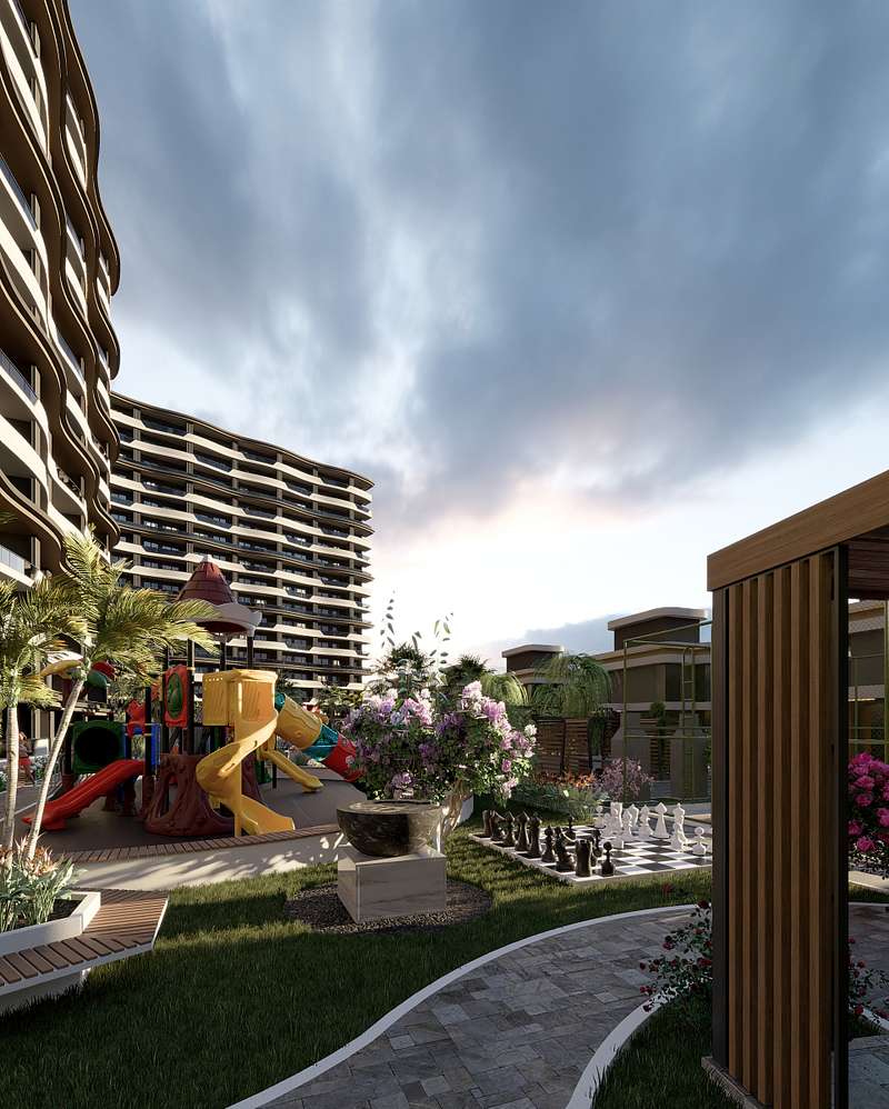 Complete with modern features, the project has a secure, comfortable, and social environment. Residents can benefit from an outdoor fitness center, landscaped gardens, swimming pool, aquapark, BBQ areas, basketball court, parking lot, playground, walking trails, and sitting areas. Security service and a generator are also available.