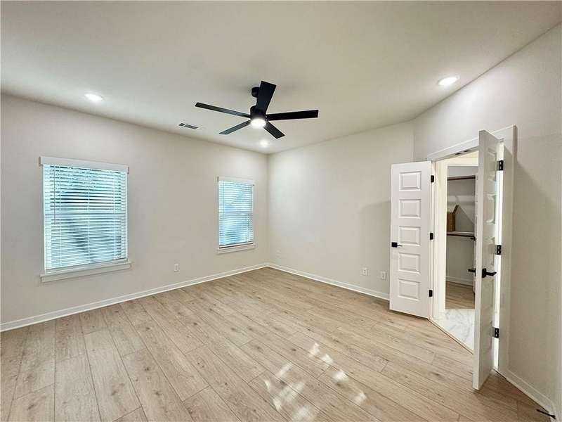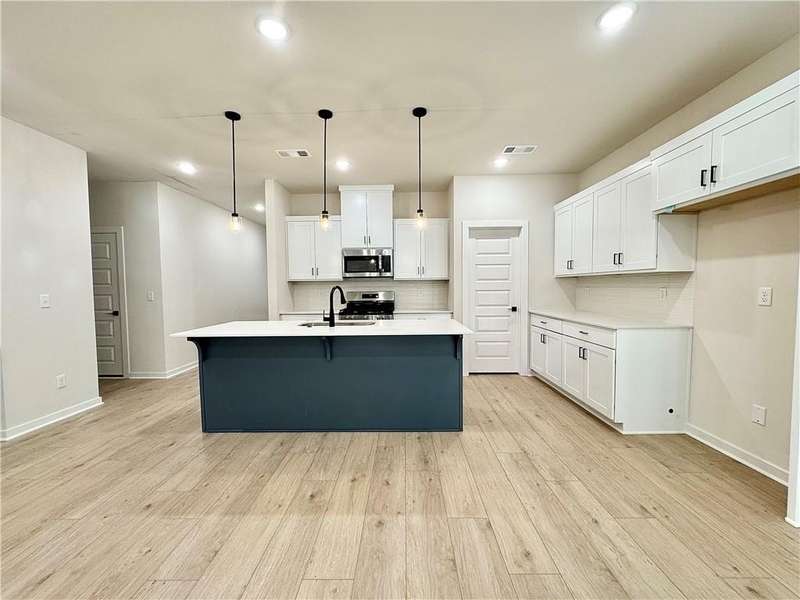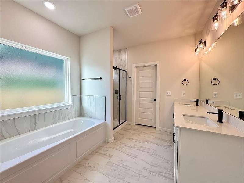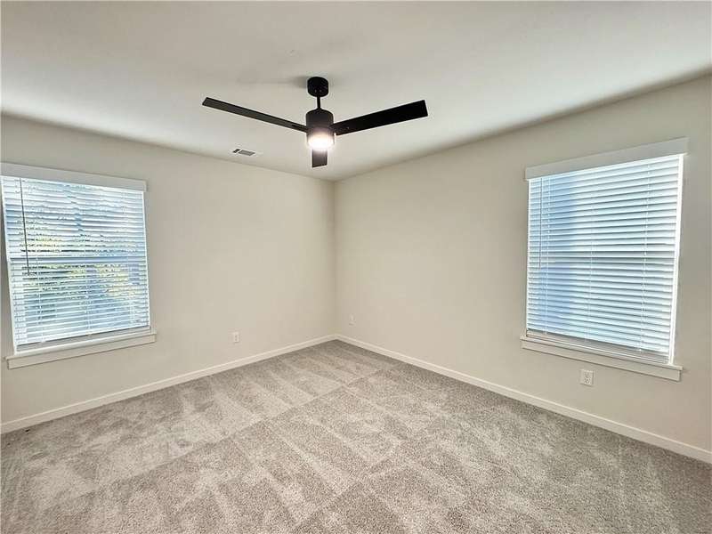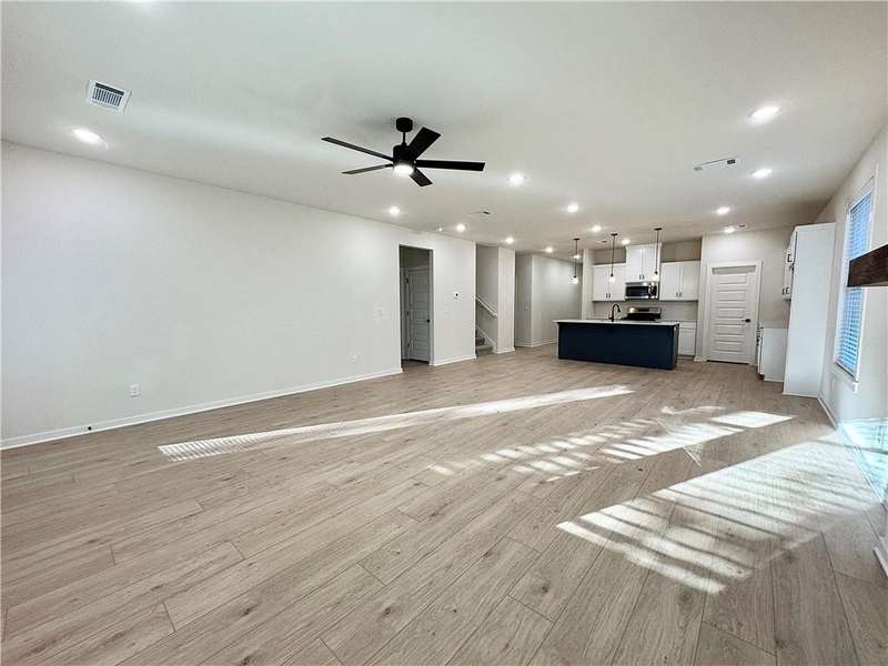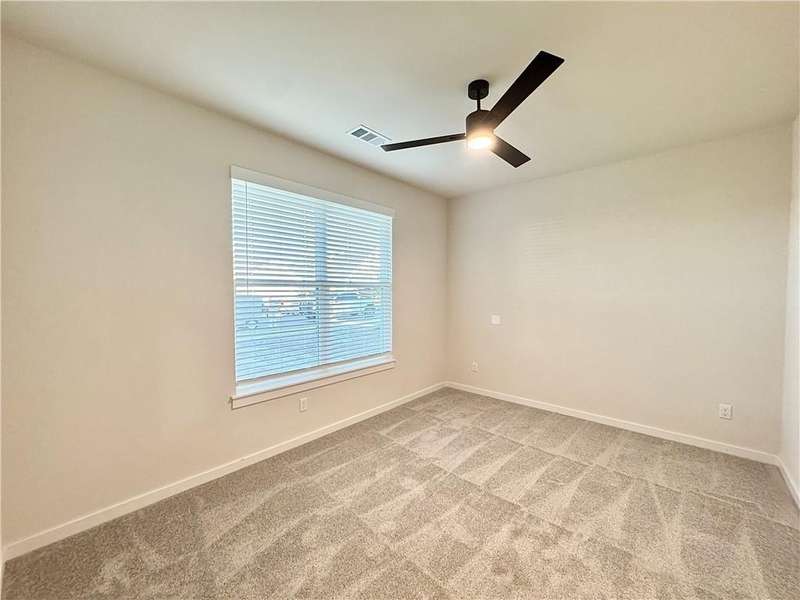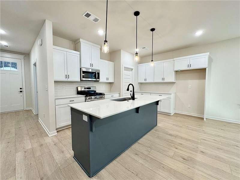 Fence, blinds and gutters included! Discover your dream home in the new neighborhood- Jacob's Crossing. Cooper plan with garage on the right & West facing! 9 ft ceilings, linear electric fireplace, LVP flooring throughout the main living areas & primary bedroom, quartz countertops & more. Chef's kitchen boasting frigidaire stainless steel appliances, gas range, pantry, quartz countertops, bar pull handles, large island and gorgeous backsplash. Luxurious primary bedroom features abundant natural light, while the spa-like primary bathroom offers a walk-in shower, tub, double sinks, and spacious walk-in closets. Additional features-secondary bedroom on the main level, 2 large secondary bedrooms upstairs and a functional laundry room. Nestled on a generous lot with covered patio that overlooks the serene sodded, fully fenced backyard, creating an exceptional living experience. Sturdy concrete siding! Model home located at 3631 Tranquility St- Lot 1.