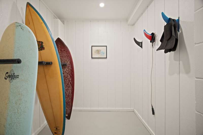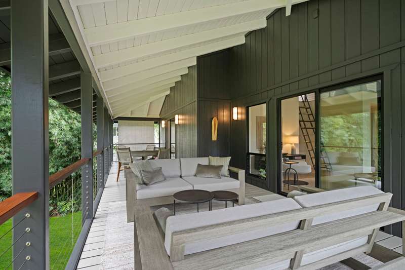 A collaborative effort by Gia Design and Rocky Mountain Hardware, the home presents a "Modern Meets Beach" aesthetic. Clean lines, natural textures, and an airy, light-filled palette are all found just one block from the world-famous Hanalei Bay.