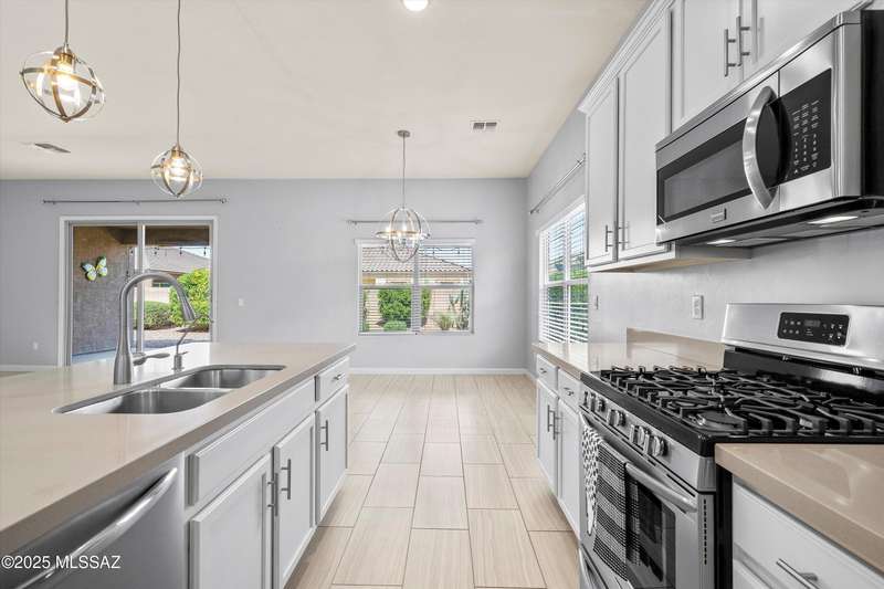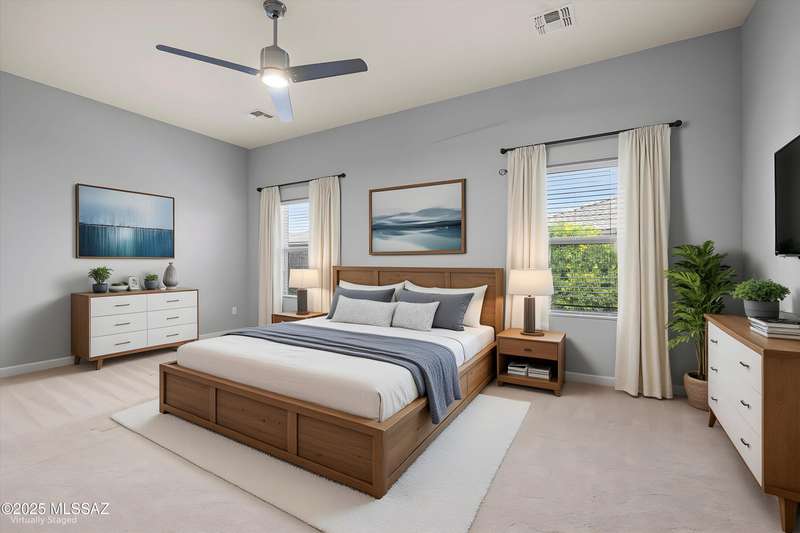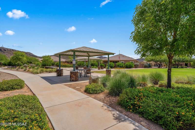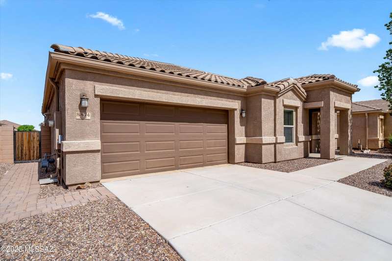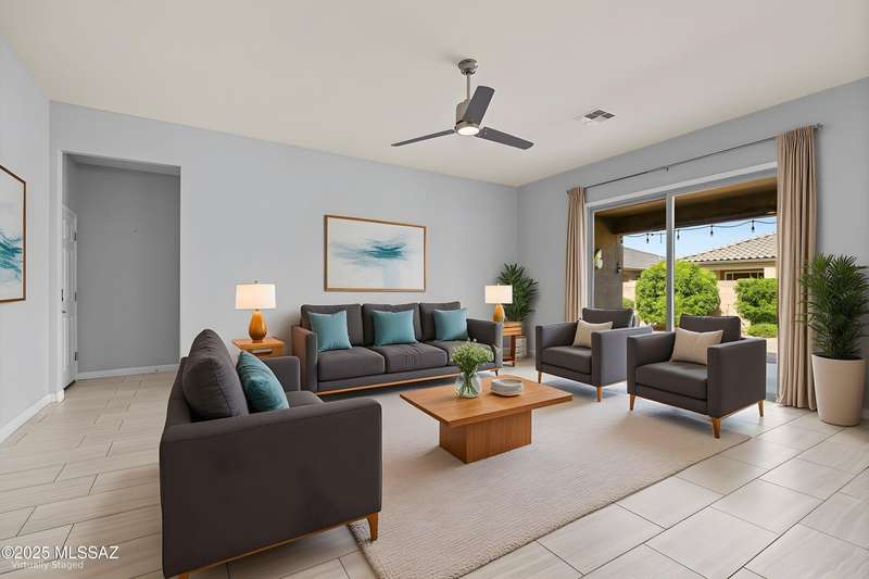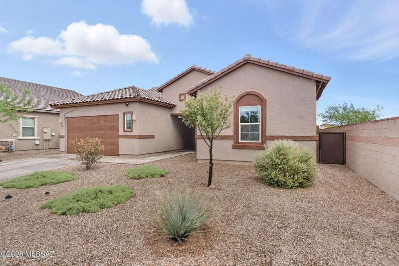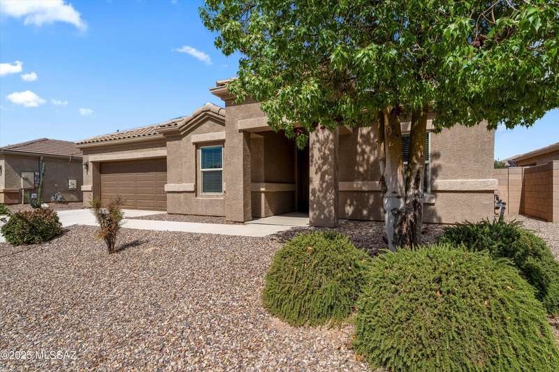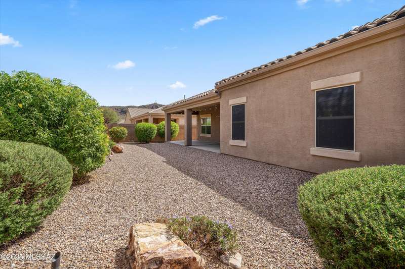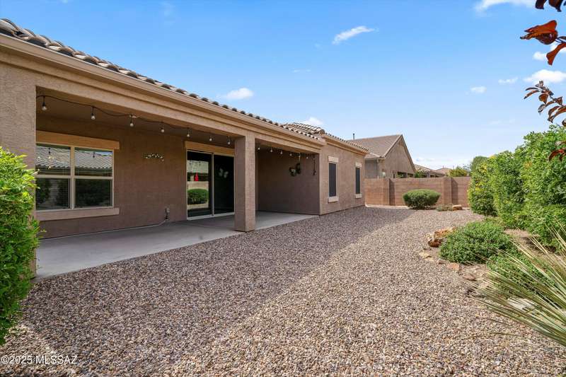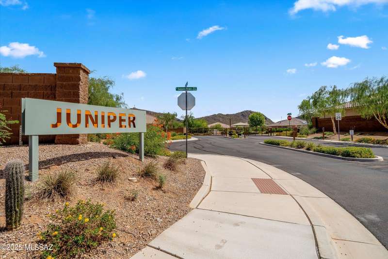Welcome to this impeccably maintained 2BR + Den, 2.5BA home in the gated Juniper neighborhood of Saguaro Bloom, a perfect choice for 55+ buyers or winter visitors seeking a low-maintenance, resort-style lifestyle. The chef's kitchen is the heart of the home, offering granite counters, extended cabinetry, ss appliances, gas range, walk-in pantry, reverse osmosis system, & lrg island that seamlessly connects to the great room. Inside, the split bedroom layout ensures privacy, w/ each bedroom featuring its own en-suite bath & spacious closet. A versatile den w/closet can easily serve as a 3rd bedroom, hobby room, or home office. The primary suite includes direct access to the laundry room, complete w/ pre-plumbed sink for added convenience. Step outside to your custom-designed backyard oasis