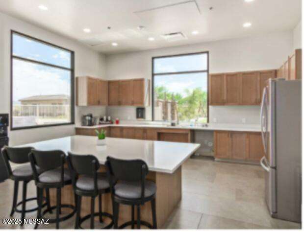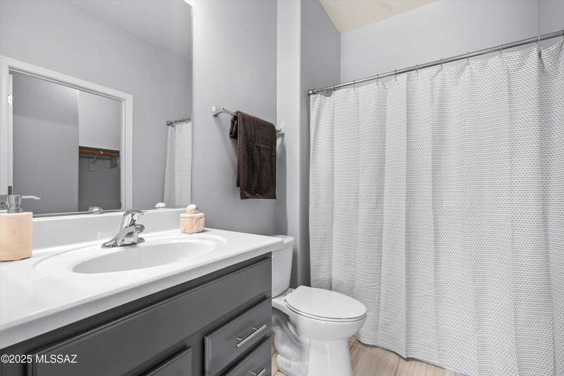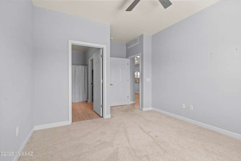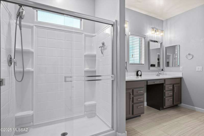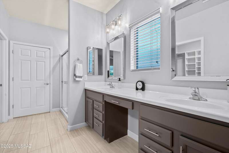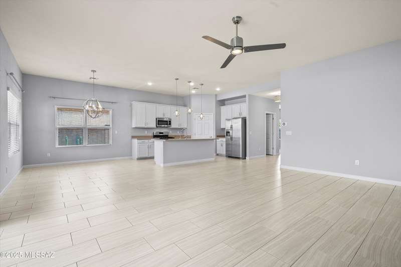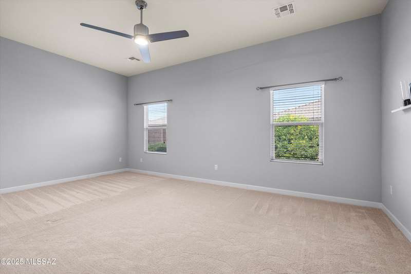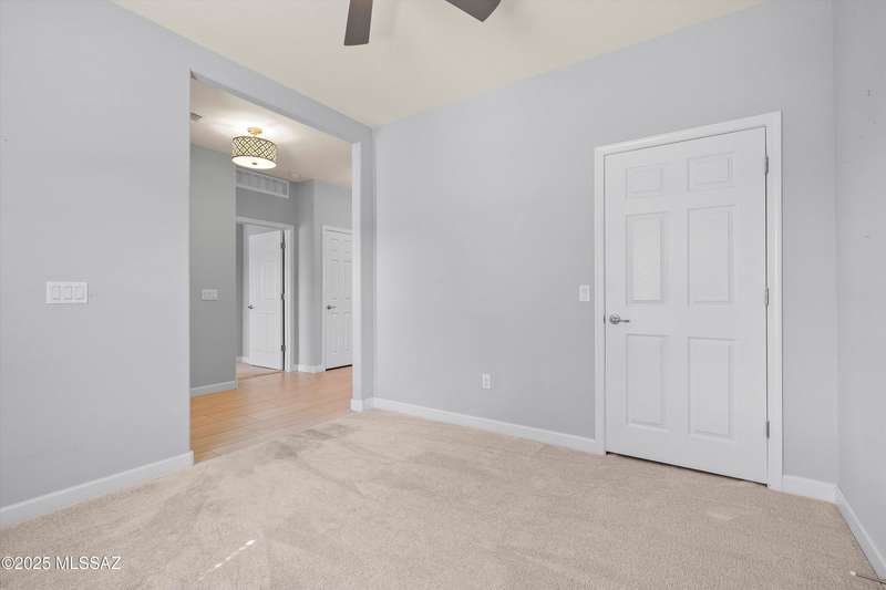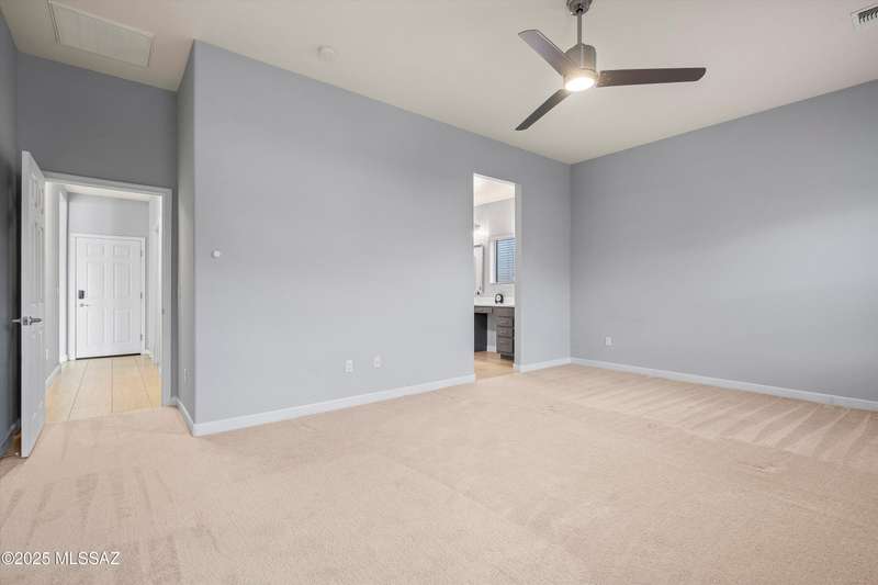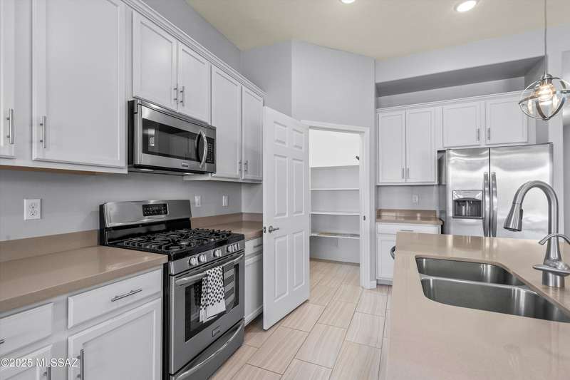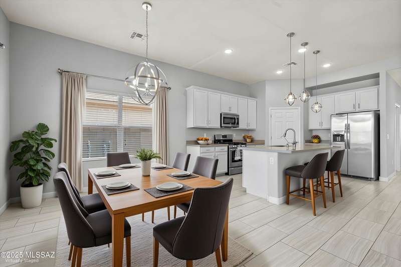 Welcome to this impeccably maintained 2BR + Den, 2.5BA home in the gated Juniper neighborhood of Saguaro Bloom, a perfect choice for 55+ buyers or winter visitors seeking a low-maintenance, resort-style lifestyle. The chef's kitchen is the heart of the home, offering granite counters, extended cabinetry, ss appliances, gas range, walk-in pantry, reverse osmosis system, & lrg island that seamlessly connects to the great room. Inside, the split bedroom layout ensures privacy, w/ each bedroom featuring its own en-suite bath & spacious closet. A versatile den w/closet can easily serve as a 3rd bedroom, hobby room, or home office. The primary suite includes direct access to the laundry room, complete w/ pre-plumbed sink for added convenience. Step outside to your custom-designed backyard oasis