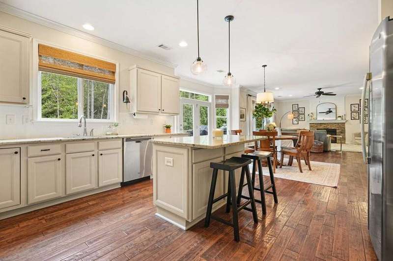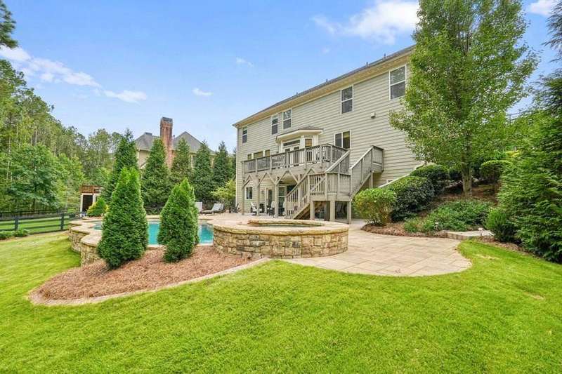 Tucked away on a peaceful street, this updated and meticulously maintained home blends classic elegance with thoughtful modern upgrades-and a backyard poolside paradise you'll never want to leave. Inside, natural light pours across a bright, open floor plan featuring fresh neutral paint, gleaming hardwood floors, and plush new carpet. The heart of the home is a chef's kitchen with stone counters, gas cooktop, and double ovens-flowing seamlessly into the cozy fireside family room for effortless entertaining. A spacious dining room sets the stage for gatherings, while a private home office tucked behind French doors offers quiet focus when you need it. From the 3-car garage, a custom mudroom with built-ins keeps life beautifully organized. Upstairs, your serene primary suite is a true retreat, joined by three additional bedrooms, two full baths, and a versatile bonus room-perfect as a playroom or second office. The finished terrace level is a showstopper, with a full kitchen, rec room, exercise room, 5th bedroom, full bath, and 2nd laundry hookup-making it the ideal in-law suite, teen hangout, or ultimate entertaining space just steps from the pool. Out back, the magic unfolds: a PebbleTec pool and spa set against a backdrop of lush Zoysia grass, hardwood trees, and total privacy. It's the kind of backyard where summer lasts all year. With walkability to Arnold Mill Elementary, this home is move-in ready and made for memory-making.