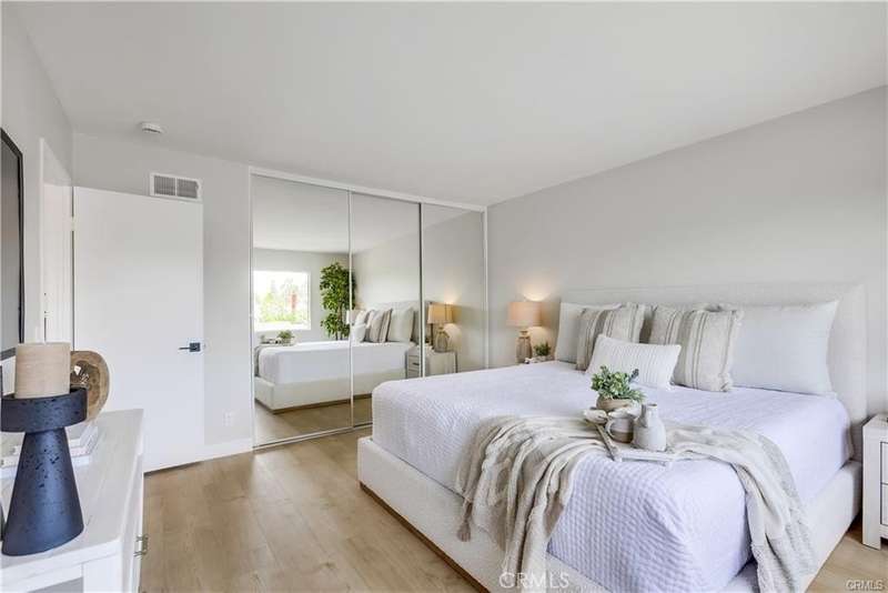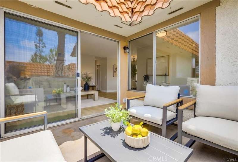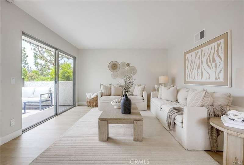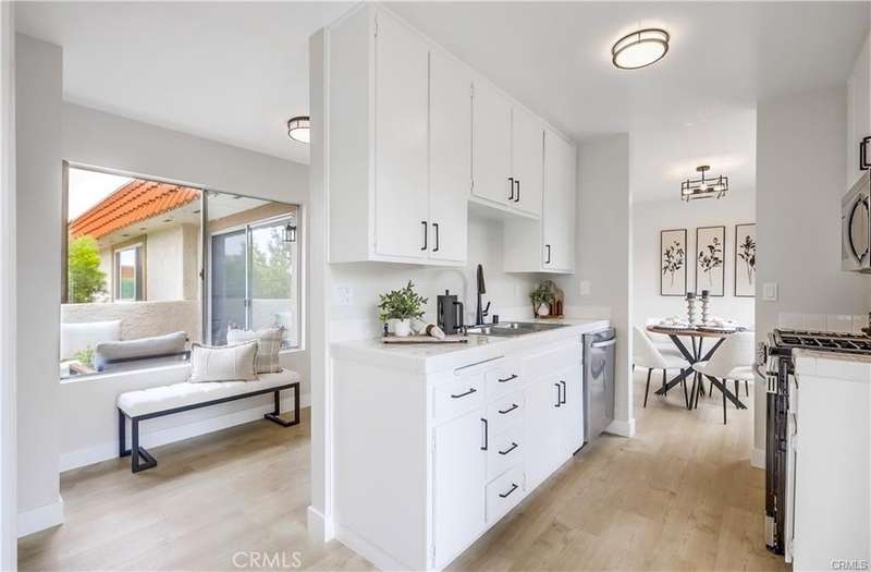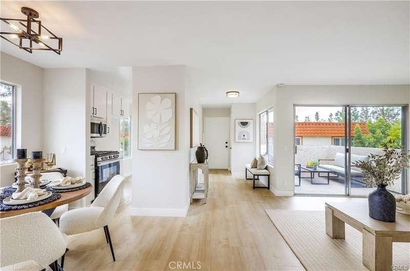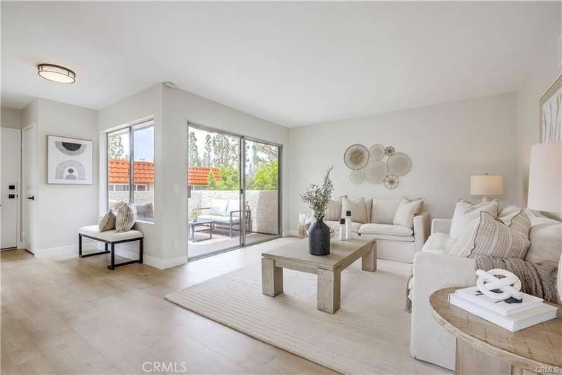 Highly updated single level carriage end unit. This great open floor plan offers lots of new upgrades, with new vinyl plank flooring through out, paint, some new appliances, new washer/dryer new baseboards, windows and blinds and new light fixtures through out. There is all new hardware through out, updated with new bathroom vanity, new faucet, mirror and toilet. There is a private patio off the living area all offering the perfect space for entertaining. This home has tons of natural light, a single car garage with an additional assigned parking space, community pool and spa. close to parks, schools and the freeway.