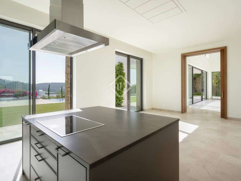 This villa boasts a striking facade, characterized by modern architectural lines that harmonize with the verdant landscapes. The expansive outdoor living spaces are thoughtfully designed, featuring a private swimming pool, sun-drenched terraces, and manicured garden, offering a serene oasis where residents can unwind in privacy and comfort. The integration of natural materials and contemporary design elements ensures that this home not only stands out for its beauty but also for its eco-friendly footprint. Stepping inside, the living areas (living room, terrace, garden and kitchen), designed for both relaxation and social gatherings, feature sophisticated decor, modern fireplaces, and direct access to the outdoor terraces, allowing for a seamless indoor-outdoor living experience. The villa includes breathtaking views to the southeast. The interior is marked by an abundance of natural light, high ceilings, and open-plan living areas that create an atmosphere of spaciousness and elegance. The state-of-the-art kitchen serves as the heart of the home, equipped with premium appliances and finishes, perfect for culinary exploration and entertaining guests. The bedrooms, on the first floor, are sanctuaries of peace and privacy, boast en-suite bathrooms, high-quality finishes, and views that capture the essence of the surrounding natural beauty. Please contact us for further details.