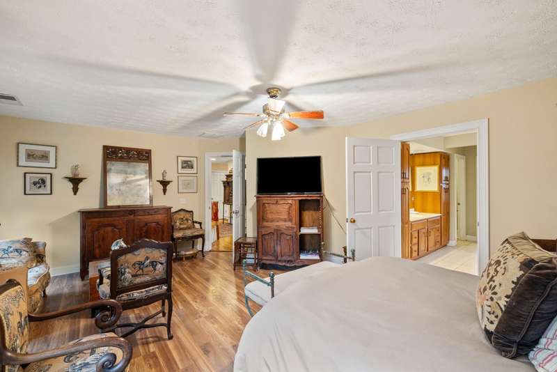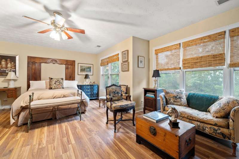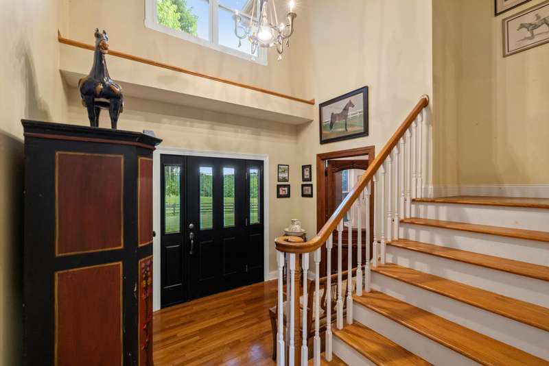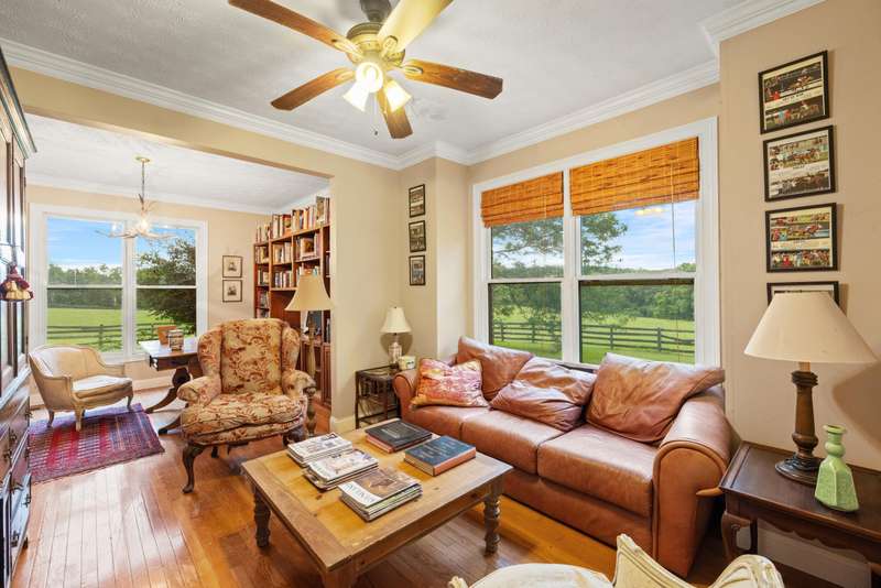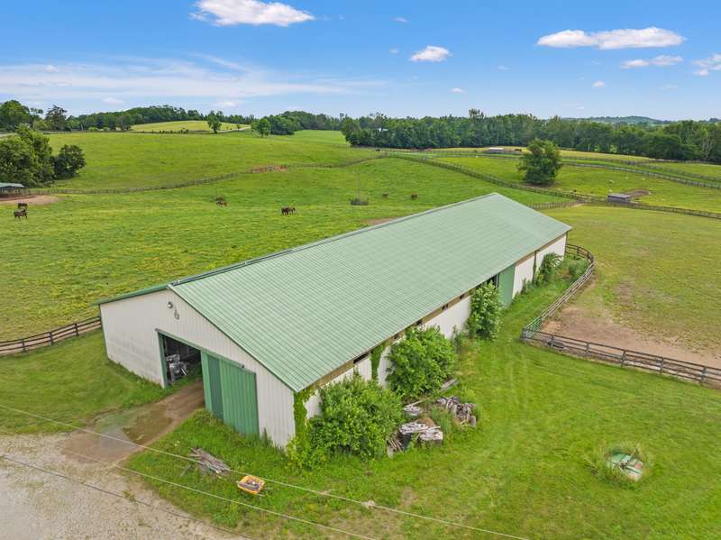 Discover this remarkable 54-acre property in the heart of Woodford County, offering a unique combination of privacy, functionality, and scenic beauty. The main residence features 5 bedrooms, 4 full baths, and over 4,500 square feet of finished living space, including a 2-car attached garage. Located at the rear of a working Thoroughbred farm, the home enjoys stunning views of the Kentucky River and surrounding woodlands. A spacious walk-out basement includes a full bath and kitchenette-ideal for guest quarters or a multigenerational layout. Additional features include a two-zone geothermal HVAC system and a large rear deck overlooking the river. The property also includes a barn, indoor arena, and two tenant houses. Furnishings in the primary residence are available for purchase.