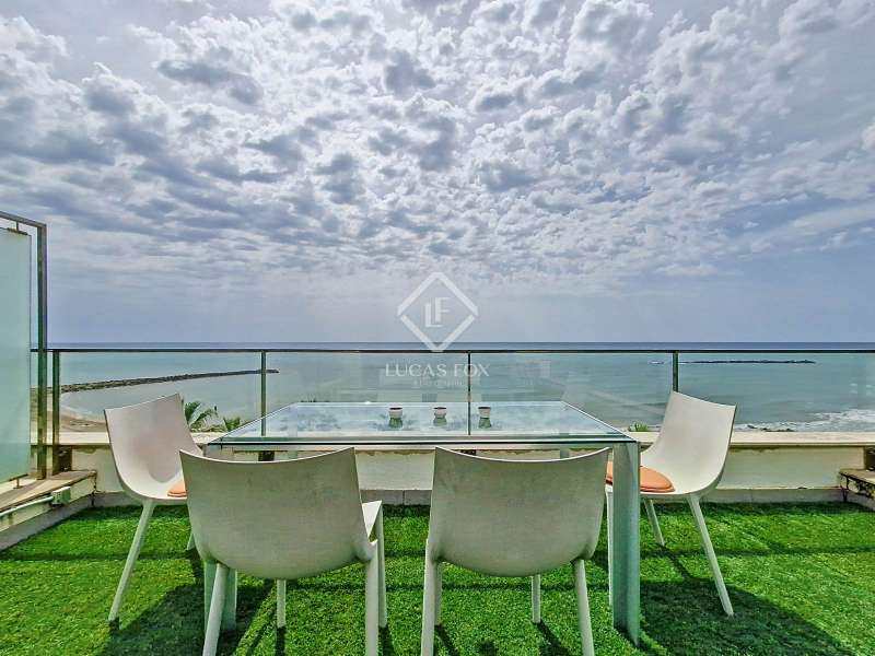 Living by the sea is a privilege reserved for a select few. This spectacular duplex penthouse, located in one of the most sought-after areas of Cubelles, offers the perfect balance of exclusivity, comfort, and incomparable views of the Mediterranean. From the very first moment, the property exudes spaciousness and light thanks to its excellent orientation and the large windows that allow you to enjoy the sea as a backdrop. The main floor features three bedrooms—one en suite with a full bathroom and two single bedrooms—a second full bathroom , a separate kitchen with a convenient gallery, and an elegant dining room living room with access to a spacious balcony with direct sea views. A space designed to enjoy the peace and beauty of beachfront living. On the upper floor , we find a double bedroom , an additional room, a bathroom , and, as the centerpiece, a stunning, large private terrace. A unique place to relax, host al fresco dinners, or simply soak up the sea breeze and the sunsets. This duplex penthouse not only offers a well-appointed and functional interior, but also exclusive amenities that make all the difference, such as an included private parking space, a separate storage room , and a beautiful communal pool facing the sea. All of this makes it a perfect place both as a permanent residence or as a luxury second home. It's not just a property, it's a lifestyle. Contact us to arrange an exclusive visit and let the Mediterranean enchant you.