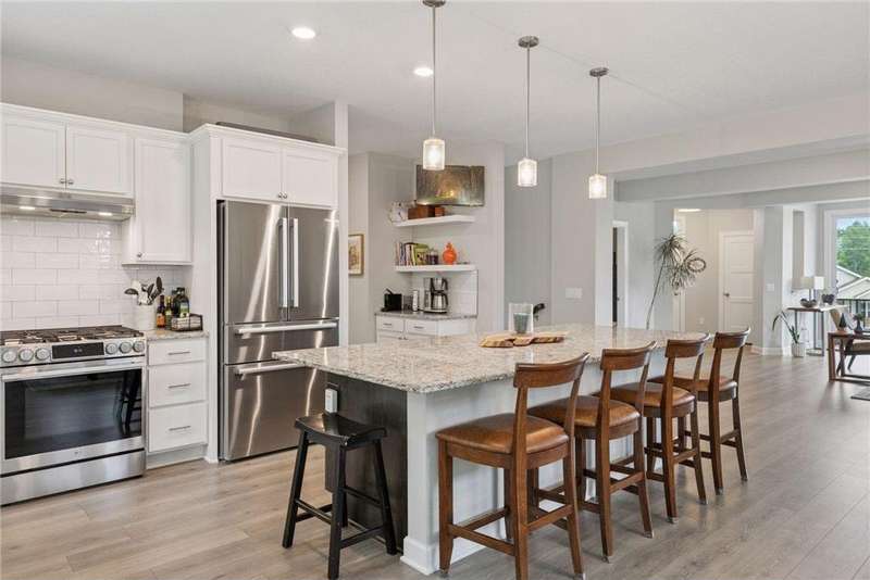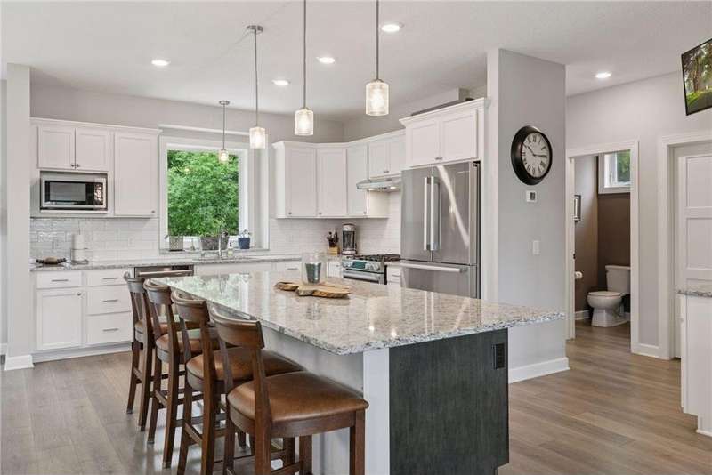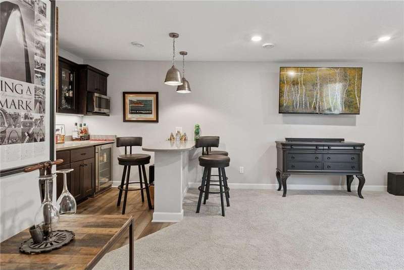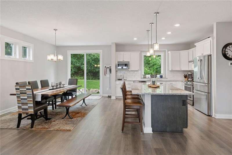 Introducing custom modern design perfection with sweeping views in Eden Prairie! Step into this beautifully crafted, recent custom build—impeccably maintained on a low traffic cul-de-sac, and move-in ready! Designed with light, space, and flexibility in mind, the main level features sun-soaked living areas and an open-concept kitchen/dining/living space that makes everyday living and entertaining seamless. The upgraded kitchen boasts sleek stainless steel appliances, a spacious center island perfect for casual meals, a walk-in pantry, and even a cozy coffee nook. Flowing easily into the generous dining area, you’ll love the access to the private back patio—ideal for BBQs, quiet evenings, or hosting friends. Just off the living room, enjoy a deck with panoramic views of Eden Prairie and beyond. Working from home? You’ll appreciate not just one, but two dedicated work-from-home spaces: a main floor office/den plus a tucked-away pocket office for extra focus. Upstairs, a central loft offers the perfect hangout zone—great for lounging, gaming, or play. You'll also find a stylish full bath, laundry room, and the show-stopping primary suite featuring a spa-like private bath and walk-in closet. The custom-finished lower level adds even more flexibility with a spacious wet bar and open gathering space—perfect for game day or movie night. The oversized 3-car garage includes a heated tandem stall, ideal for a workshop, gym, or storage. Amazing location with easy access to top end grocery stores, shopping, restaurants, parks, Golf, and top ranked Eden Prairie High School. This home truly checks all the boxes: modern layout, thoughtful design, bonus spaces, and unbeatable views. Come see the details and possibilities in person—schedule your showing today!
