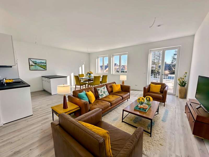 The new building consists of two buildings and has an underground garage for convenient parking. The apartments in the building complex are between 60 and 140 square meters in size. The building offers a total of ten penthouse apartments with luxurious furnishings. It has been designed to be barrier-free to ensure comfort and accessibility. An elevator provides access from the basement to the apartments. The apartments have a generous ceiling height of 2.80 meters, which creates an airy and open feeling of living. Depending on requirements, the apartments can be equipped with an open or closed kitchen with a fitted kitchen. In order to provide residents with carefree living, a basic service is included in all apartments for a flat-rate service fee. This comprehensive service includes not only the care and maintenance of the communal areas, but also a variety of small services and assistance. For example, residents can take advantage of the office service, which offers support with mail processing, parcel delivery and other administrative tasks. A car service is also available to residents, allowing them to conveniently retrieve their vehicle from the underground parking garage. For traveling residents, additional services are offered to bridge their absence. On request, the service staff will take care of regular watering of the flowers in the apartments to ensure that they are well looked after, carry out a general apartment check to see that everything is in order and identify potential problems at an early stage. Residents can also take advantage of the mail service while they are away. The service staff ensure that the mail is regularly removed from the letterbox to avoid overfilling and can forward it to the residents if necessary. The basic service thus offers a comprehensive range of services. The new building thus offers a modern and comfortable living solution with apartments of different sizes. The high-quality fittings, barrier-free access and additional services contribute to a comfortable and pleasant living environment. Occupancy is planned for the first quarter of 2024. We will be happy to assist you in your search for a suitable apartment. In order to better understand your individual living requirements and provide you with the best possible advice, we cordially invite you to arrange a personal consultation with us. Our experienced advisors will be happy to discuss your ideas and requirements for the apartment with you. We want to ensure that we can present you with apartments that meet your needs and wishes. Your satisfaction is our top priority. To arrange a personal consultation appointment, please call us on 05193 98 69 290 and our friendly staff will be happy to assist you and find a suitable time for you. We look forward to getting to know you personally and working with you to find the ideal apartment for you. If you have any further questions or concerns, please do not hesitate to contact us.