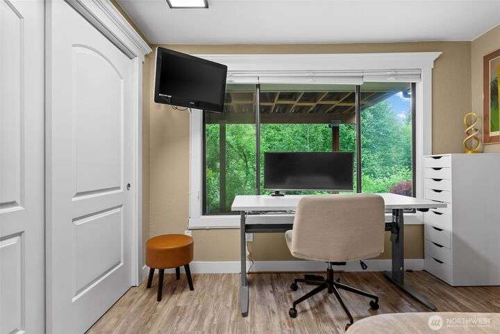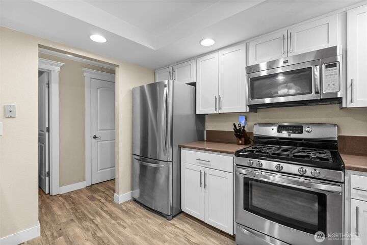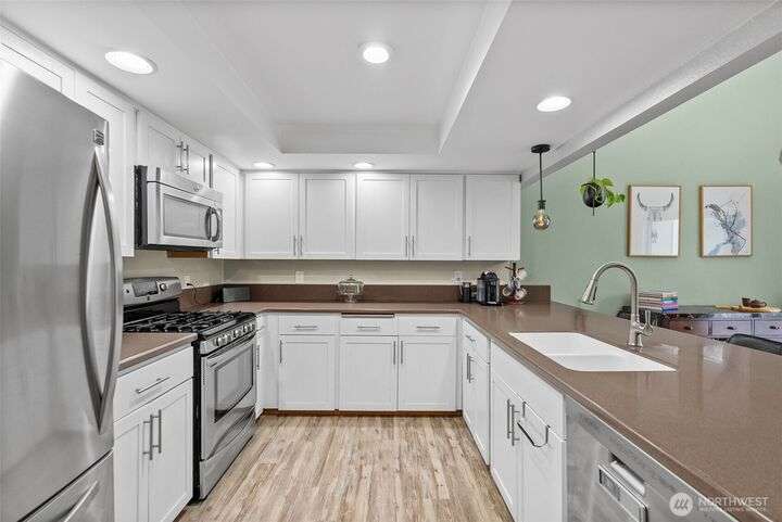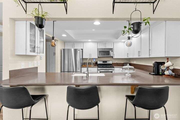 Tucked away in the peaceful Park Place Condos Community, this beautifully updated 3 bed, 2.5 bath, 3-level home offers modern comfort & style in an unbeatable location. The main floor features an open-concept kitchen w/ SS appliances, a cozy living room w/ fireplace & mini split, 1/2 bath, & a dining area that extends to a spacious deck overlooking a lush greenbelt. Upstairs, you’ll find a generous primary suite w/ large closets, a 3/4 bath, and a versatile landing perfect for an office or reading nook. The lower level, complete w/ heated floors, offers 2 add'l bedrooms, a sleek 3/4 bath, & patio access from one of the bedrooms. Abundant natural light throughout, storage, A/C, & 2-car garage. Close to schools, shopping, dining, & more!
