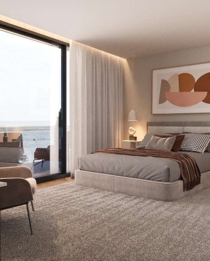 This Bow 136 development, situated in a privileged region of Foz do Douro and offering unobstructed views of the River Douro and Foz, comprises eight self-contained units featuring studio, one-bedroom, and two-bedroom floor plans, each measuring ample in size. The development's founding concepts are modernity, comfort and design and it is located in a prime area of the city of Porto, essentially residential and with several points of interest, including the streetcar network that has existed since 1895, with an extension of almost 9 km. Other nearby attractions include the Cantareira lighthouse, the blue flag beaches and the Passeio Alegre garden, from where you can watch a magnificent sunset. This studio, with river views, consists of an open-plan living room with kitchen, facing a beautiful garden, as well as a suite. It is 18 kilometres to Francisco Sá Carneiro Airport and 4.9 kilometres to downtown Porto. CHARACTERISTICS:Area: 59 m2 | 630 sq ft Bathrooms: 1 Energy efficiency: A FEATURES: Garden with 16.90 m2.