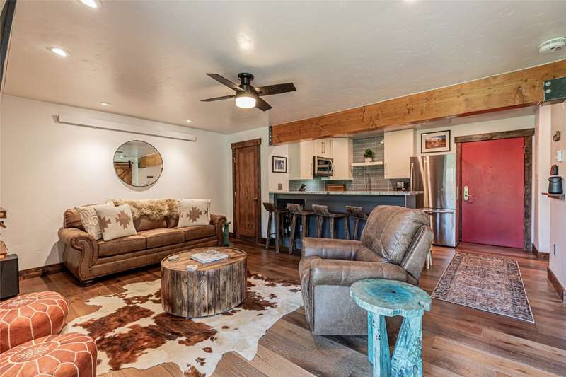 Location, Green Zone and beautifully updated. This Storm Meadows condo has it all! With the easiest access to the base area and ski slopes, located right off of Right -O-Way ski run, stop in for a mid-day lunch or a cold beverage on the deck. Beautifully updated with hardwood wide plank flooring, light granite slab countertops, stacked stone fireplace, Lutron’s dimmable mood lighting and really nice zen-style furnishings, sure to please all of your guests. Soak in the hot tub or sauna after the day’s adventures, ski locker is right at your fingertips and an elevator to boot. There’s always something happening at the base area. No need to worry about parking. A quick stroll down Ski Time Square and you’ll be there, restaurants, shopping, live music, and more. This is one you won’t want to miss out on.