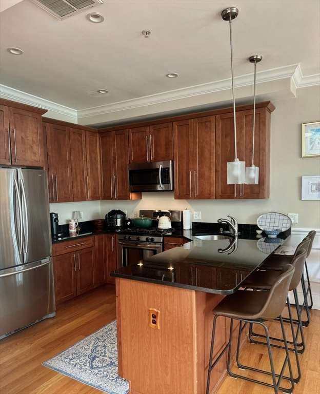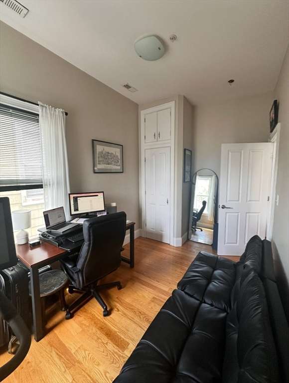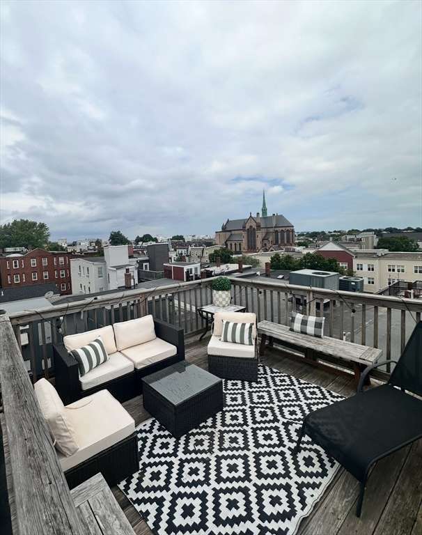 RARE 2 bed penthouse on the East Side of South Boston, featuring a private roof deck with sweeping city & water views! Set on a quiet side street, this pet-friendly home offers an open floor plan, hardwood floors, high ceilings, and abundant natural light. The modern kitchen features granite countertops, stainless steel appliances, ample cabinet space, and bar seating. The spacious living/dining area is anchored by a charming gas fireplace, perfect for entertaining or relaxing at home. The primary bedroom features a walk in closet, while the second bedroom includes additional storage making it ideal as a guest room or office. Step outside to your private, covered rear deck, ideal for summer evening & upstairs to the private roof deck with 360 degree views of the city & bay. Additional highlights include central A/C, extra basement storage, in unit laundry, and low HOA fee. Currently rented at $3,750/mo through 10/31.