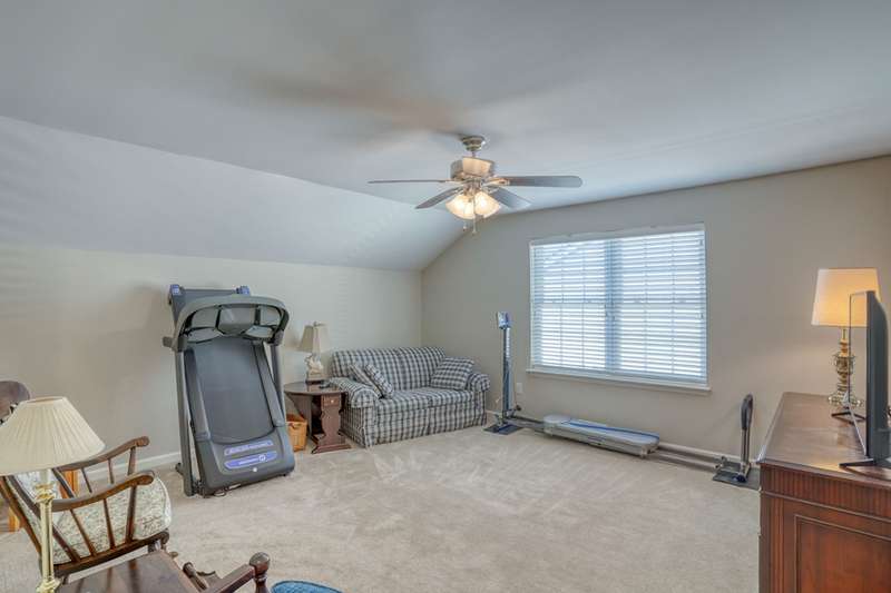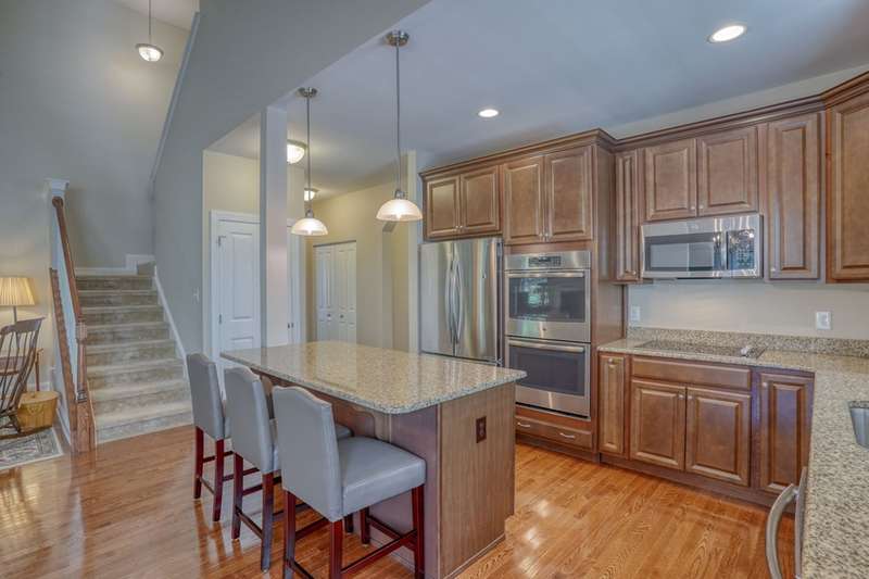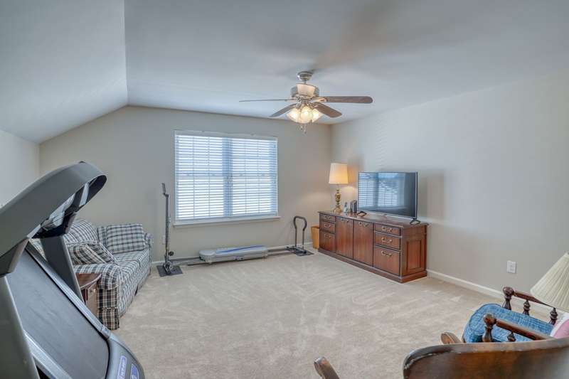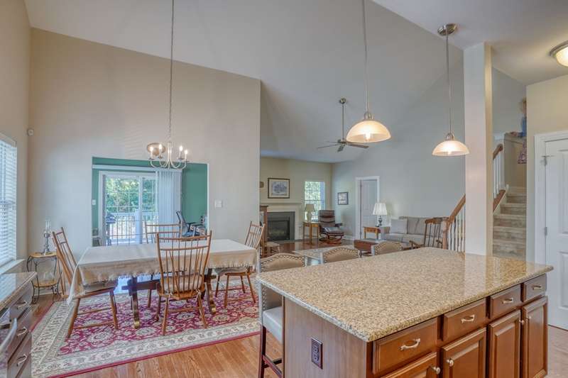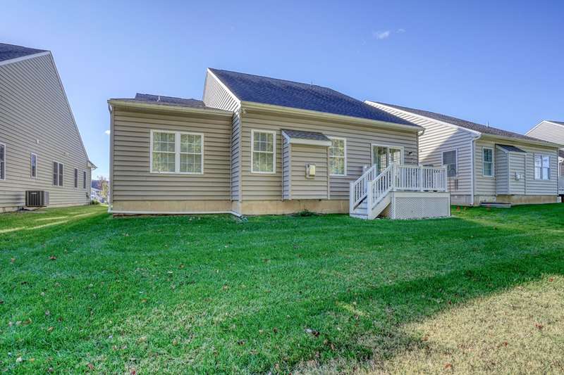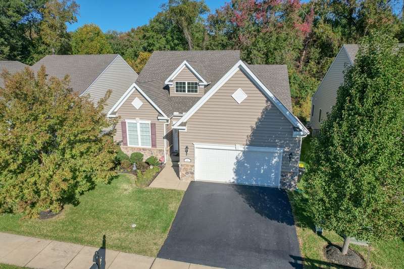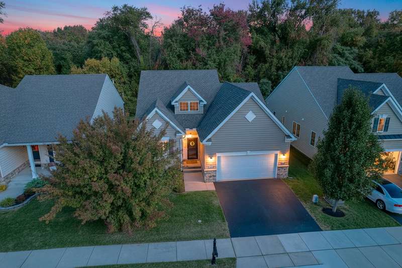 Move-In ready 7 year young gem backing to peaceful woodlands in the fabulous Village of Eastridge 55+ community! Carefree living meets convenience in this stunning Bayard model offering 2-bedrooms and 2 full baths with the flexibility of a potential 3rd bedroom! With over 2300 sq ft of living space enjoy the ease of first-floor living with an open floor plan, cathedral ceilings, and gorgeous hardwood floors that create an airy, inviting atmosphere.The spacious kitchen is a showstopper with granite countertops, stunning 42" maple cabinetry, upgraded stainless appliances, double oven, large center island (with additional storage), and plenty of prep space for cooking or entertaining. Need more space? Take a walk upstairs to discover a large loft offering the ideal setup for a home office, guest space or den. Enjoy the convenience of a spacious walk-in closet off the loft-ideal for storing holiday decor, off-season clothing or anything you like neatly out of sight. This home also has a useable crawlspace for even MORE storage! Situated on a rarely available premium lot, this property backs to protected woodlands, providing a peaceful setting and privacy rarely found. Why wait for new construction when this home is move-in ready and meticulously maintained in an established community? The HOA fee is just $140 per month, covering lawn care, along with snow removal for streets, sidewalks, and driveways. Village of Eastridge offers miles of walking trails, open space, picnic areas, bocce and shuffleboard courts, plus an amazing and active clubhouse with billiards, a fitness room, and more. Grab your holiday decor and get ready to celebrate the first of many seasons in your new home!
