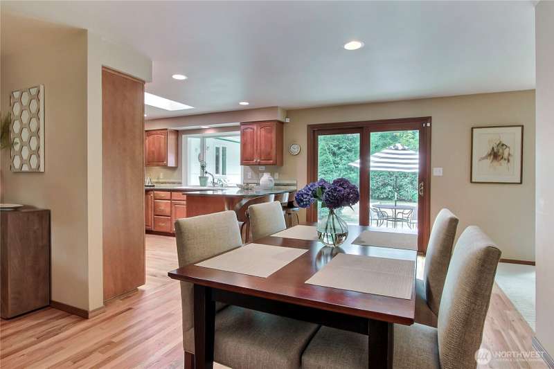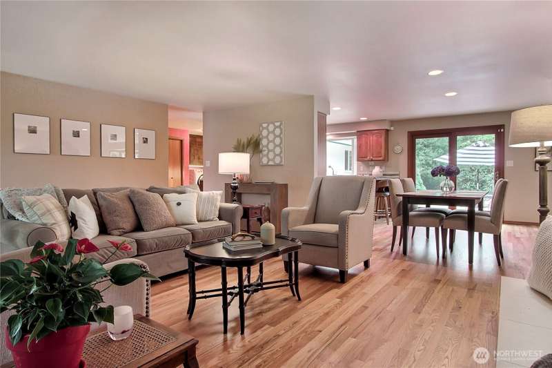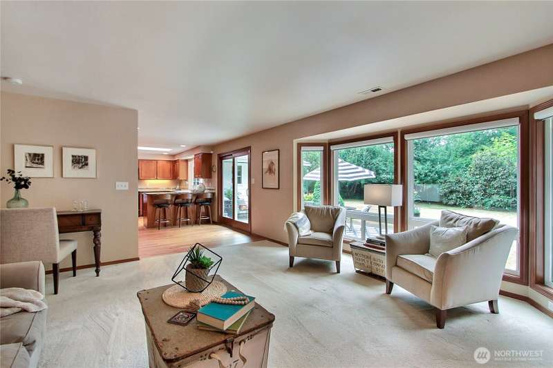 Step into timeless style in this cool, late mid-century modern Auburn rambler—featuring 5 bedrooms, 3 bathrooms, and 2,150 sq ft of thoughtfully designed living space. Perched on a private hilltop ¾-acre lot, this home offers a sense of retreat with lush grounds that back to a wooded area for added privacy. The smart layout with extra-wide hallways enhances the open feel and functionality. Hardwood floors, carpeted bedrooms, and custom built-ins add warmth, practicality, and a touch of timeless style. A huge storage closet in the two-car size garage keeps seasonal items organized. Whether you're savoring quiet moments or entertaining outdoors, this single-story home blends comfort, character, and space beautifully.