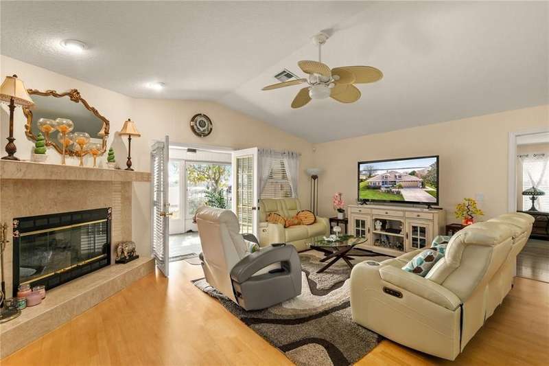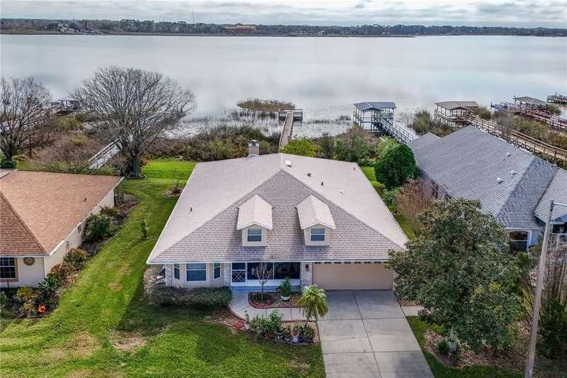 LAKEFRONT LUXURY WITH PRIVATE DOCK IN LAKE SAUNDERS POINTE- Discover the perfect blend of elegance and tranquility in this stunning 3-bedroom, 2-bathroom home with a private den, nestled in the highly sought-after Lake Saunders Pointe community. Offering gorgeous lake view and a long private dock this home is a true waterfront retreat. Step inside to find a spacious, light-filled living area featuring French doors that open onto the screened lanai, inviting in the gentle lake breeze. A wood-burning fireplace creates a cozy ambiance, perfect for cooler evenings. The well-appointed kitchen is an entertaining dream, boasting granite countertops, ample cabinetry, and a breakfast bar, making it the heart of the home. The primary suite is a sanctuary with a jacuzzi tub, separate tiled shower, dual sinks, and a dedicated makeup vanity. A private den with lanai access offers flexibility as a home office, media room, or even a fourth bedroom. Outside, follow the long dock that stretches over the water, leading to the ultimate lakeside retreat???perfect for boating, fishing, or simply soaking in the stunning sunset views. Located just minutes from downtown Tavares and Mount Dora, this home is in the heart of Florida's Golden Triangle, offering easy access to restaurants, shopping, and entertainment. The low HOA fee includes access to the community clubhouse, pool, shuffleboard, and private boat ramp. Don't miss this rare opportunity to own a lakefront paradise in a vibrant yet peaceful neighborhood. Call today for your private tour!