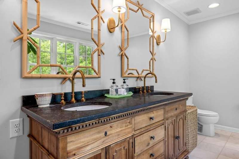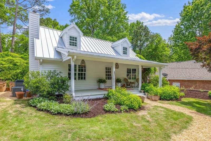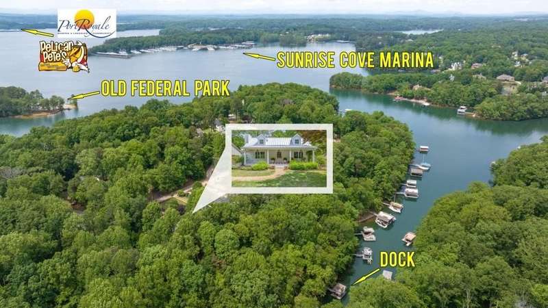 Welcome to this beautifully renovated Lake Lanier home, a rare combination of timeless charm and upscale designer finishes, complete with a single-slip deep water dock conveniently located near South Lake Lanier attractions & dining. From the moment you approach the home, Serena and Lily front porch lighting greets you and sets a precedent for the designer lighting package found throughout. Step inside to discover the character and upgrades around every corner, off the entry way find the dining room and continue to the kitchen that is open to the sitting room, spacious enough to accommodate a kitchen table and a living room amongst the wall of windows and French doors, flooding the room with natural light. The kitchen offers white cabinetry and floating shelves for convenience and storage, in addition to the pantry. The island is the perfect size for a chef's workspace. The back deck off the kitchen invites you to enjoy the private backyard setting. Additionally on the main level, you will find a bedroom that can serve as a study or media room with built ins and a fireplace, and a full bathroom updated to reflect the character and charm found throughout the home with a claw foot tub and designer lighting. Upstairs has been reimagined and renovated to feature two more bedrooms, each with private en-suites. The master suite to the right of the landing is spacious and features window bench seating. The en-suite is adorned in Restoration Hardware finishes and upgrades, including the clawfoot tub with both tub and shower fixtures and double vanity, framed in with windows overlooking the backyard. The additional upstairs bedroom suite is across the landing and offers size and ample natural light, with an en-suite that has built in storage and shelving, and a custom tiled shower. The terrace level was thoughtfully crafted and renovated with guests and entertaining in mind. Blue stone tile flooring is found throughout the entire level and continues to the back patio for a seamless blend into outdoor living space, highlighted by an expansive wall of four sets of French doors. Versatility and function throughout every inch of the terrace level, find space to accommodate a living room, dining room, and more all while accommodating guest sleeping quarters with a built-in twin-size bunk and a pull-down Queen-size Murphy bed. Pre-wired for Dolby 5.1 surround sound, everything has been considered. The full bathroom showcases a walk-in floor to ceiling tiled shower. The hidden storage closet is craft-fully tucked behind a bookcase. The finishes and craftsmanship go beyond aesthetics, with updated and replaced exterior cypress hardwood siding, insulation, and windows, along with the addition of the metal roof. Outside, the grounds have been masterfully re-landscaped with a stone wall, privacy fencing, pea gravel driveway, irrigation system. Amongst the lush Zeon Zoysia turf, find numerous established blooming plants and blossoms. The footprint allows and has been thought-out for future expansion, with space reserved for a garage or carport and a potential three-story addition. The deep water dock is equipped with electrical and pre-wired for path lighting, in addition to water connection. The single slip with a party deck provides space to dine and entertain while enjoying the view to open water. The cove position is ideal, with deep water and protection from boat traffic, yet close to open water. With Lake Lanier access at your back door, there's no shortage of activities, just a short boat ride to Aqualand Marina/Pigtails Restaurant, and easy access to other marinas, dining, and Lake Lanier Islands/Margaritaville. By car, approximately 3 miles from downtown Flowery Branch with shopping and dining.