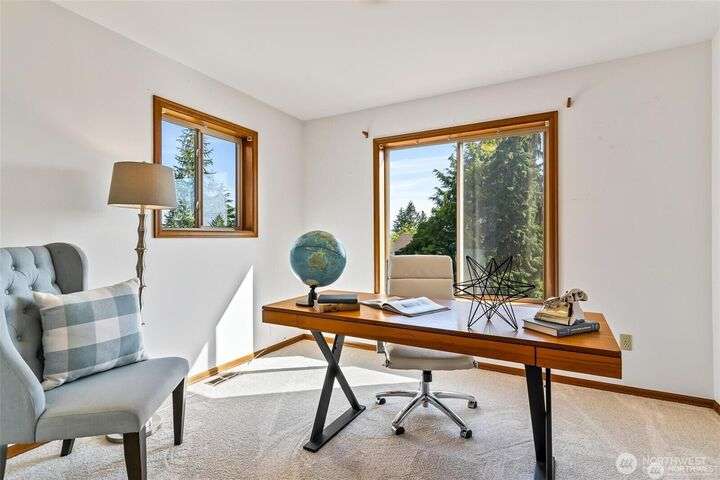 Spacious EAST facing 4-bdrm home in the sought-after Arbor Ridge Community! This 2,860 SF home on a 5,873 SF homesite features gleaming hardwoods, a luxurious primary suite, 3 addl bdrms, and a versatile main floor bonus room - perfect for an office, guest room, or play space. The light-filled LR flows into a gourmet kitchen w/ abundant cabinetry and a large peninsula, ideal for entertaining. The adjacent family room offers a cozy fireplace & opens to a covered backyard deck for year-round enjoyment. 3-car garage provides ample storage. New carpet, new exterior and interior paint throughout. Close to top rated schools, parks, shopping, dining, trails, world-class wineries, and all local amenities. A must-see in prime Woodinville.