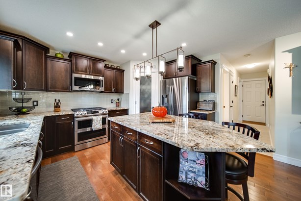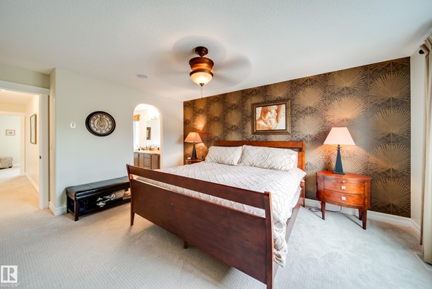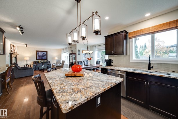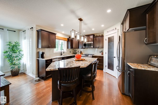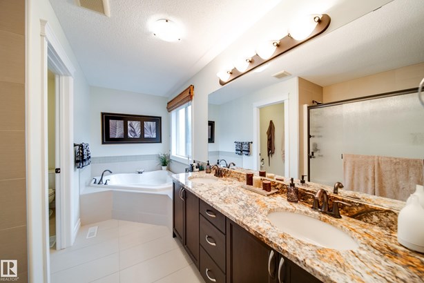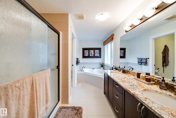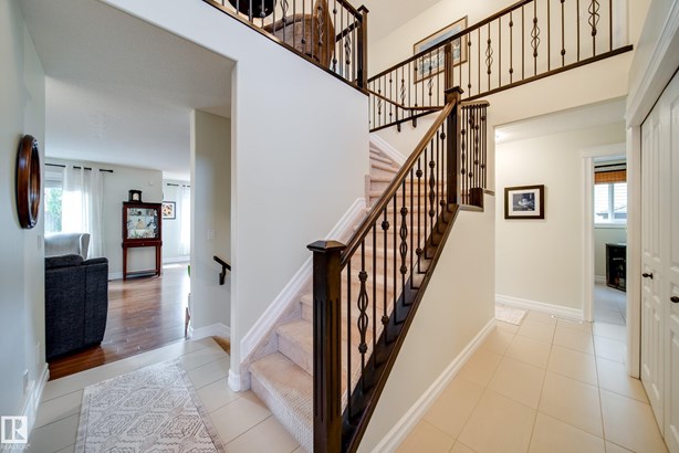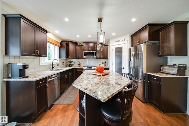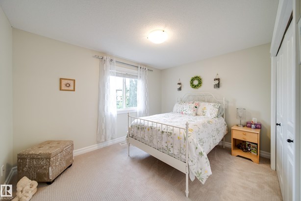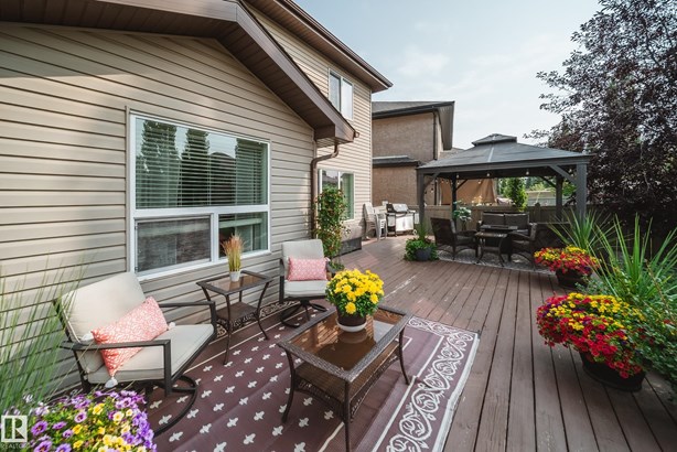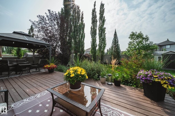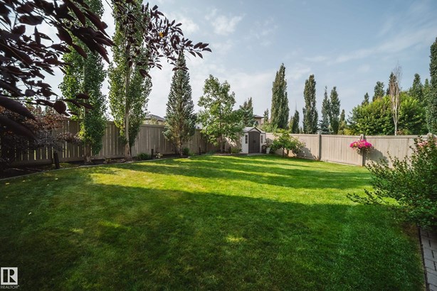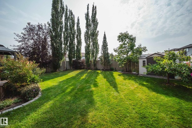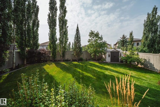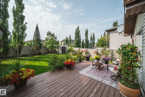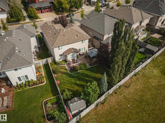 LOCATED DIRECTLY ACROSS FROM THE WALKING PATH/BLACKMUD CREEK RAVINE THIS 2300 SQFT 2 STOREY HOME IS FULLY FINISHED, BOASTS A TOTAL OF 5 BEDS , 4 BATHS AND HAS A MATURE SOUTH FACING YARD! Step inside this former show home where pride of ownership is evident throughout this one owner home. The open concept but still traditional in nature offers a main floor dining room that separates the living room with a 2 sided gas fireplace. The kitchen boasts granite counters, s.s. Appliances and more cupboard and counter space then one could need. Your mature yard is the perfect oasis with a beautiful deck/pergola, large trees and shrubs, irrigation and loads of green space. The upstairs of this home is ideal for the growing family, with 4 large beds and 2 5pce baths. The primary bed has a walk in closet with custom shelving and a en-suite with jetted tub and stand alone shower. The fully finished basement is home to a 5th bed, rec room and more storage. New furnace and H20 tank plus AC to keep you cool in summer!