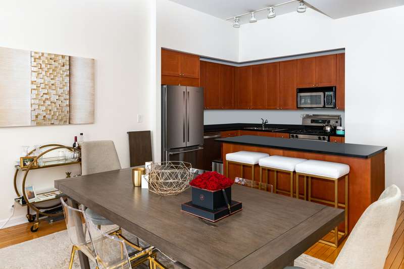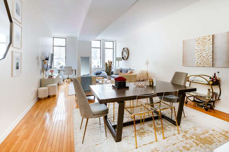 Loft Like Studio/Home Office Now available in one of the most iconic Chelsea addresses, a large classic loft featuring 10.5 feet ceilings, 7 feet tall eastern facing windows, beautiful stripped wood floors, almost 500 Sqft of entertaining space in your living room, a very modern kitchen with stainless steel appliances and tons of storage, a marble tiled bathroom with a deep soaking tub, a really large and quiet bedroom with a wall of closets and can accommodate a double king sized bed. Chelsea Mercantile is one of the most iconic white glove doorman condominiums in Chelsea with a very attentive and caring staff, a well appointed Gym, a beautifully 10,000 sqft landscaped common Roof Deck, a really large Kids Play Room and an excellent Laundry Room. The building houses a Wholefoods, onsite parking (extra) and newly renovated lobby. It is in walking proximity of some amazing restaurants, nightlife, shopping, Madison park and N,R,W,F,M,1,E & C subway trains. Pets are welcome.