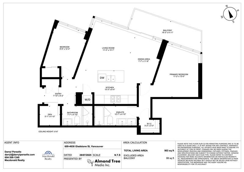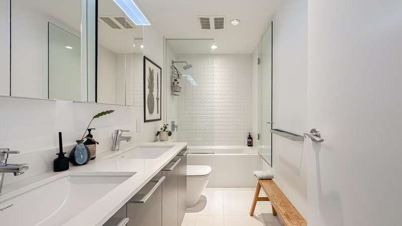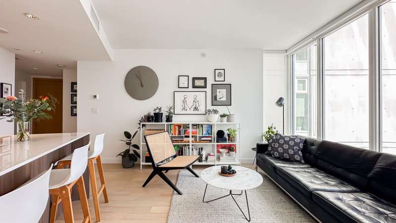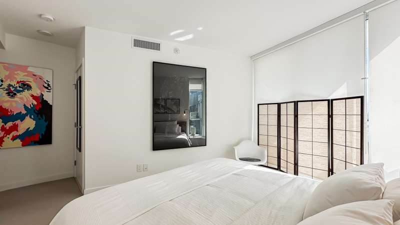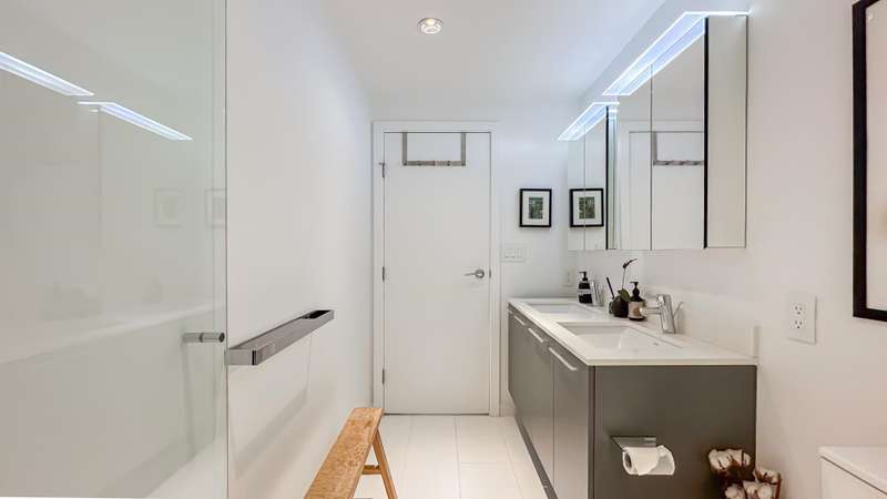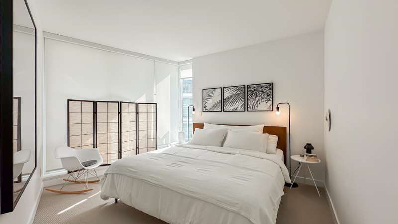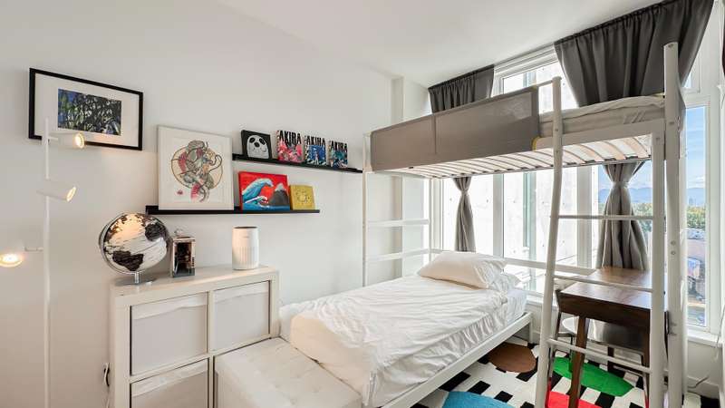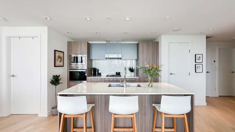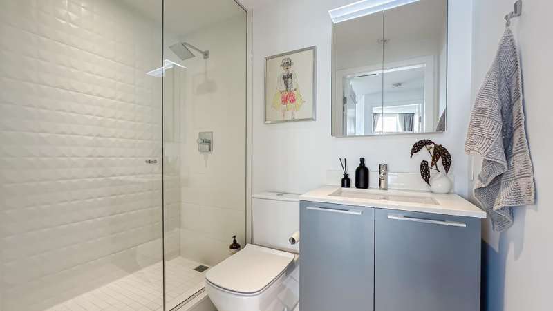 Fantastic 2 bed 2 bath at Kensington Gardens. Bright and delightful home shows well and offers perfect open concept plan with lots of floor to ceiling windows. 2 large bedrooms are nicely separated. Kitchen features high end MIELE appliances, gas cooktop and large island for prepping, entertaining and enjoying meals. Enjoy dual access to large covered deck that peeks around so you can watch the kids swimming in the sparkling pool. There is A/C for year round comfort! Primary features a walk in closet and a dual vanity in ensuite.. Amazing amenities include concierge, pristine outdoor heated pool and hot tub, sauna, gym, party room, media room and 2 children’s play areas. Immediate access to T&T, and many fine restaurants, coffee shops and transit routes. Come take a look and be impressed!