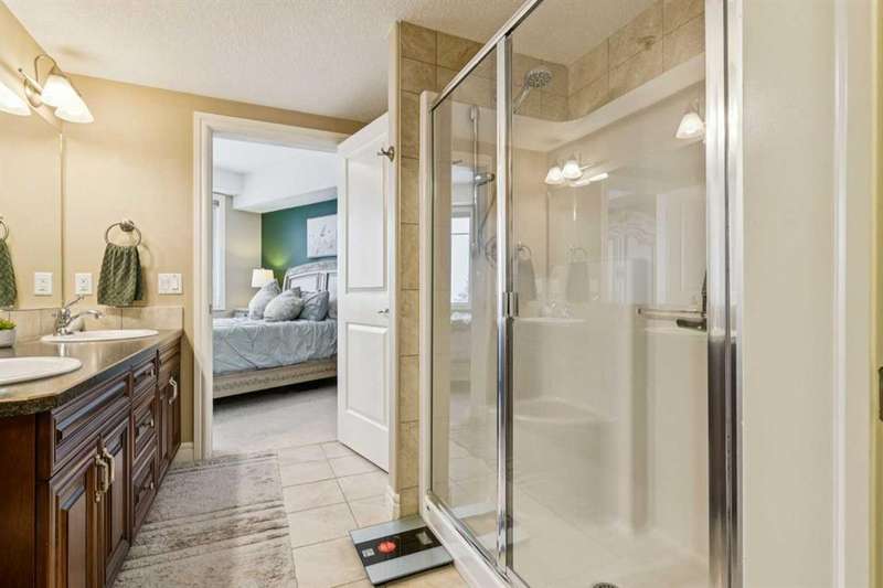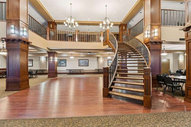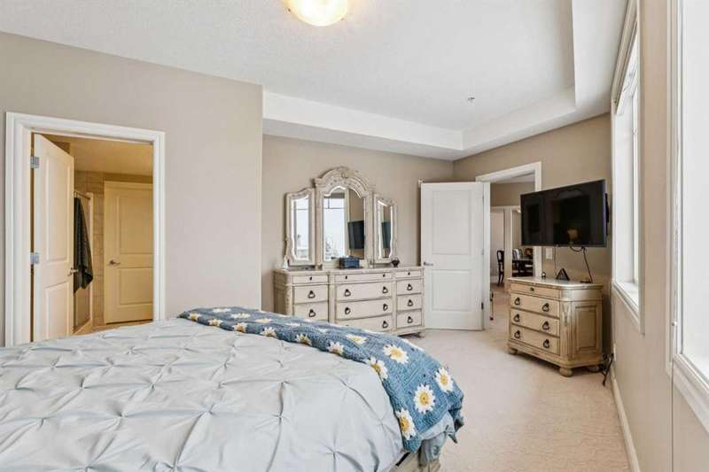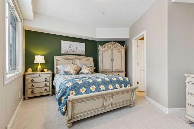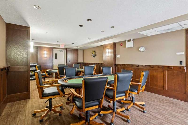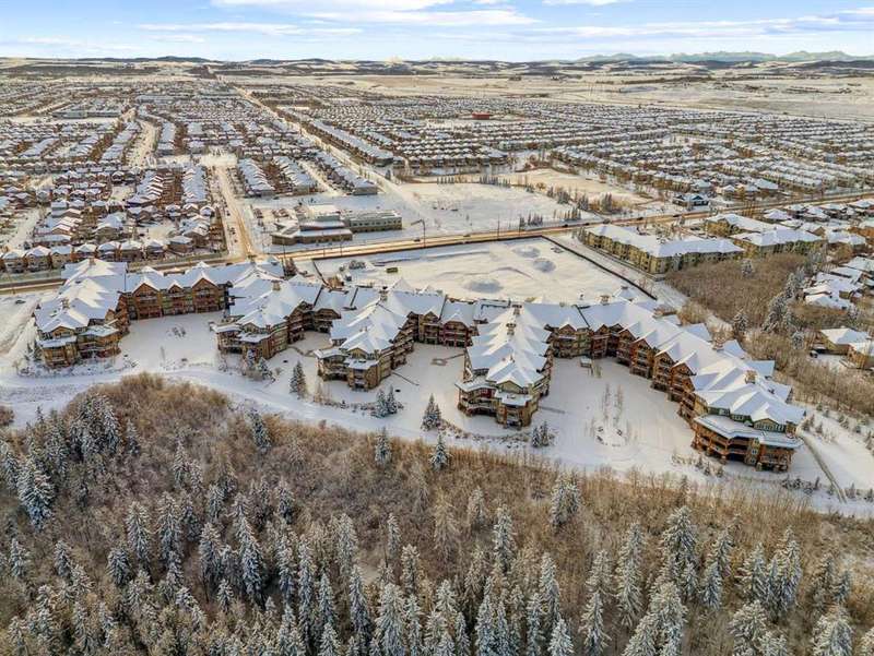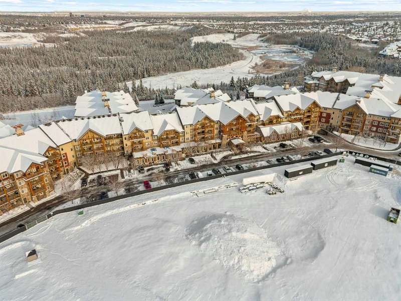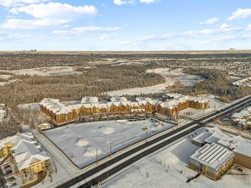 Welcome to Unit #2308 in Sanderson Ridge, an exceptional 1373 sqft, 3rd floor, 2 bedroom, 1 den, end unit overlooking Fish Creek Park in Calgary’s premier 40+ adult lifestyle community. This extensive, well maintained residence features 9’ ceilings, a large living and dining area warmed with a gas fireplace, a spacious kitchen with breakfast bar, a spacious den, two very sizeable bedrooms all with substantial windows allowing for maximum scenic views of Fish Creek Park and ample natural sunlight—including a large primary suite with spacious walk-in closet and luxurious four-piece ensuite—and a second bedroom with a built-in Murphy bed and desk. The 13' x 8' NE-facing balcony offers 180 degrees of panoramic views of Fish Creek, the city skyline, and Marshall Springs. Additional conveniences include in-suite laundry with built-in cabinetry and two titled underground parking stalls, one directly across from one of the carwash bays and each with its own storage room and located steps from the elevator. ALL UTILITIES are included in the condo fees, along with an unmatched array of amenities: fitness centre, lap pool, hot tub, steam room, 42-seat theatre, bowling alley, billiards and poker rooms, woodworking shop, craft room, wine room, coffee bar, library, formal dining and ballroom, catering kitchen, bike storage, 2 car wash bays, 8 guest suites, and beautifully maintained grounds. Set against the ridge of Fish Creek Park, this rare floor plan offers refined living, privacy, and resort-style luxury—an outstanding opportunity not to be missed.