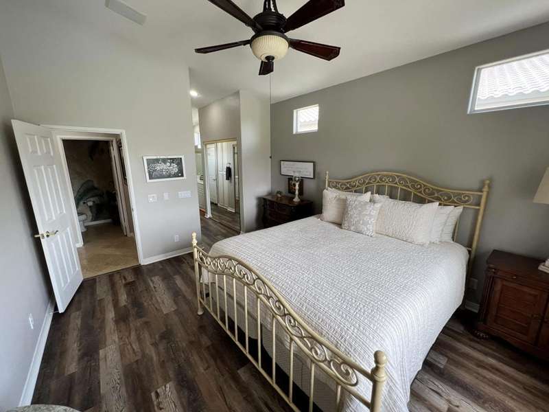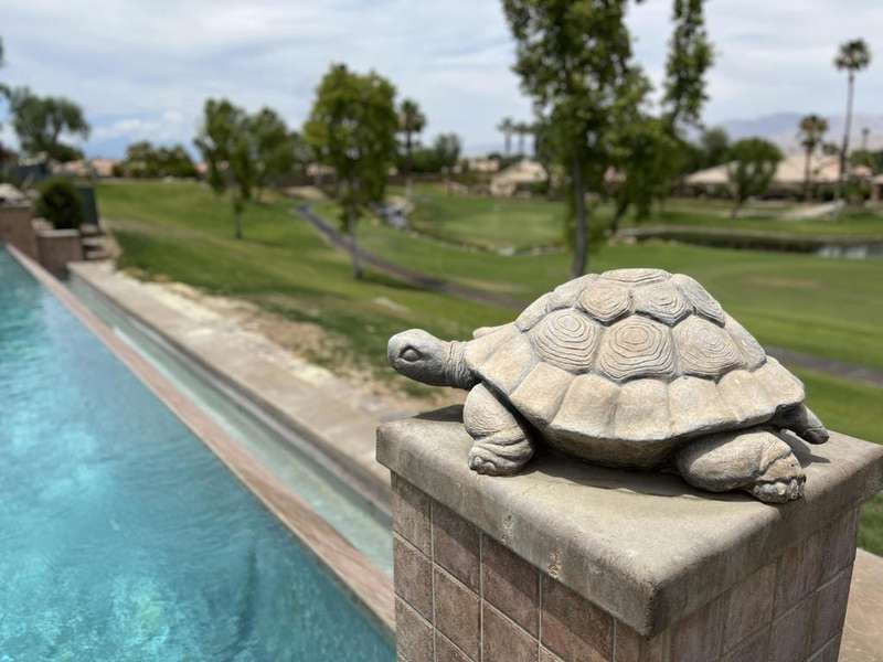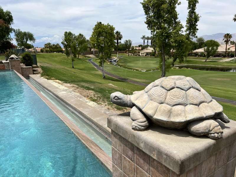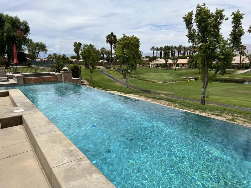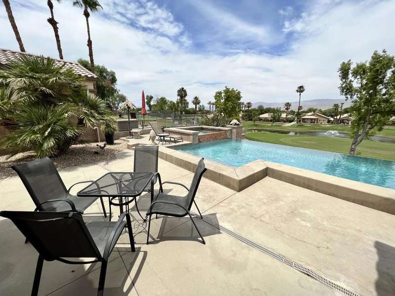 Available Nov & Dec 2025This formal model home sits high above the signature hole at Big Rock Golf Course with amazing views of the green, lake, Shadow Mountains to the North, and San Jacinto Mountains and beautiful sunsets to the West. This home boasts a huge infinity edge pool great for doing laps or just floating with your favorite beverage. Inside there are two master suites with King beds and their own full bathrooms and an additional half bath off of the open great room. This property is not inside the gates off Indian Springs Country Club but the quiet dead end street still has the great location to all the North La Quinta area has to offer as well as easy access to I-10 and HWY 111.Security Deposit $3500