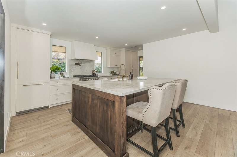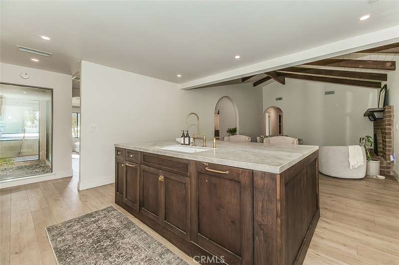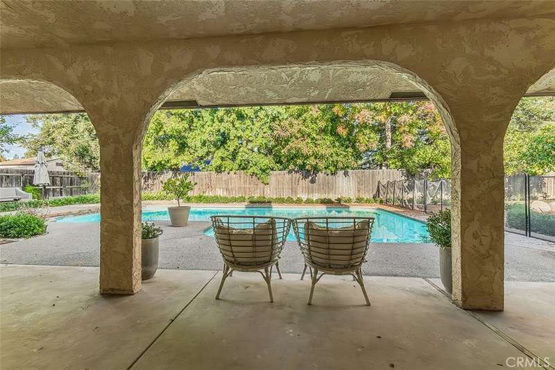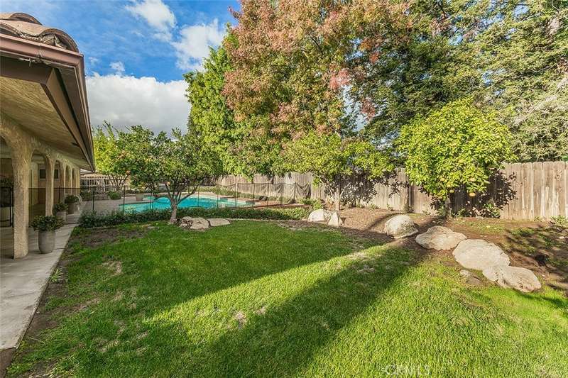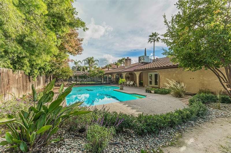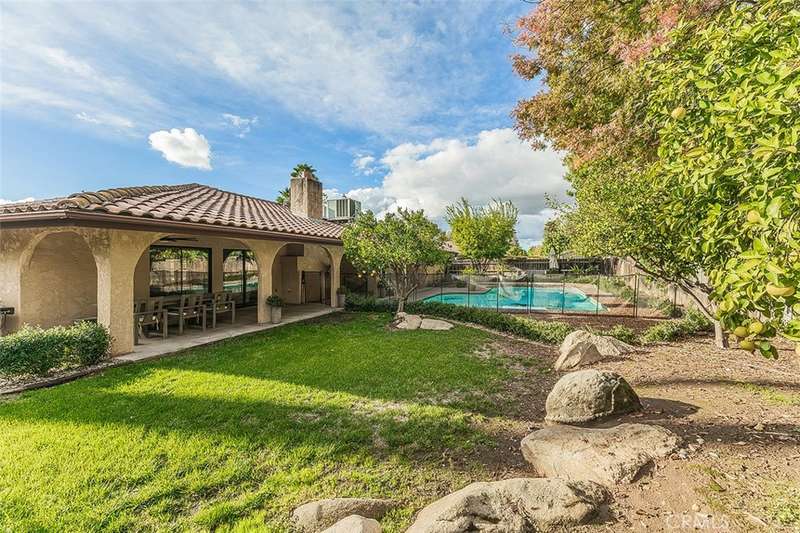 This impressive very desirable NE Fresno 4 bedrooms and 2 bathrooms home is complete with so many amenities and features that you have been looking for. You will love arriving home to the circular driveway leading to the huge 3 car garage , tiled roof, and gated front entry with very tall wood double doors. Continue to be impressed with beautifully chosen smooth wall paint with 5.5" baseboards and the deluxe laminate and tiled flooring. .The rounded archways in the interior greet you as you enter this great floor plan with a separate living room, dining room, and family room with vaulted beam ceilings, and a brick wood burning fireplace. You will appreciate all the floor to ceiling windows and views to the exterior that this home has to offer. The completely remodeled kitchen one year ago is a dream come true with so many designer touches and loads of upgrades. All the countertops in the home are tastefully chosen quartzite including the 8' x 5' eating bar island for daily dining or very fun for all the family gatherings with an amazing well designed storage area as part of the construction. The gourmet upgraded Z Line appliances include a gas cooktop with its own pot filler, fabulous custom hood, a very impressive builtin refrigerator, an appliance garage, and outstanding cabinetry with unlacquered brass hardware and faucets. All the bedrooms are very spacious with a lovely primary suite with vaulted ceilings and walk-in closet plus a beautifully remodeled bathroom with a deluxe rainforest shower for your relaxation and a sliding door to the rear yard. In addition to all the living space this home has to offer, the very large walk-in linen closet and shop area/craft room will give added comfort and space for all the needs of your family. The backyard has been tastefully designed with the arched very long patio overlooking the spacious pool for hours of enjoyment. There is an abundance of many varieties of citrus trees etc. plus much lush well maintained landscaping on this 1/3 acre parcel +-. This NE Fresno neighborhood is conveniently located near shopping, restaurants, and Freeway 41 and the very desirable Clovis Schools.