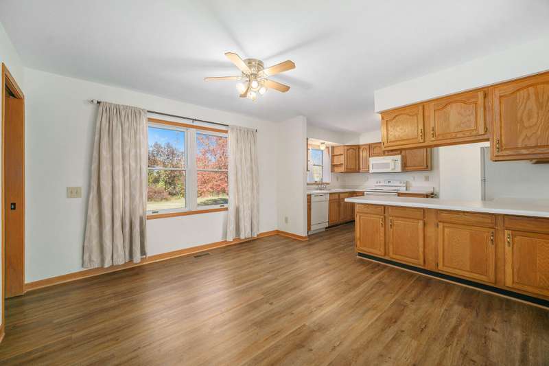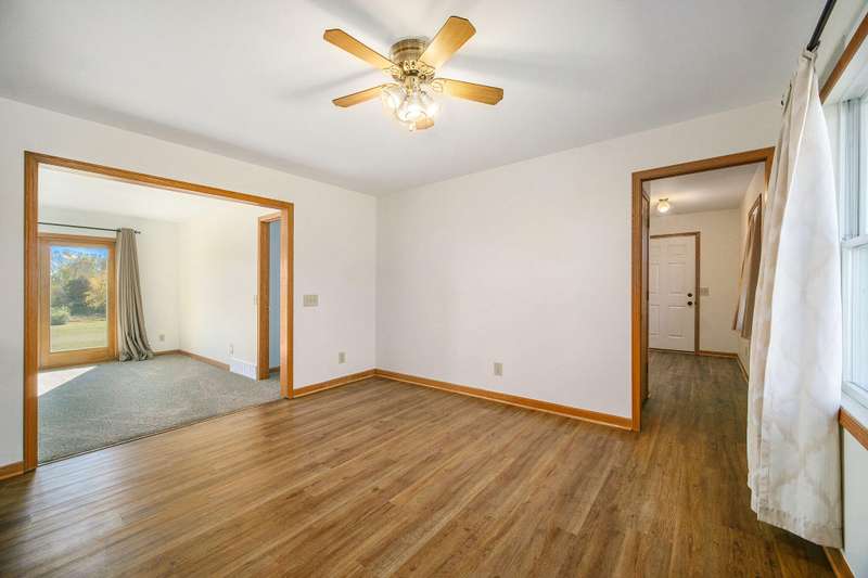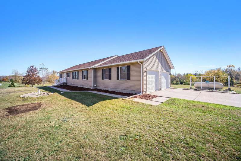 Set back off a quiet country road, this beautifully updated ranch offers 9.61 acres of peaceful privacy and natural charm. The home is move-in ready, featuring brand new flooring and fresh paint throughout, along with recent upgrades including a new water heater and garage doors installed in 2025. You'll also find a new microwave, dishwasher, and a whole-house generator for added convenience and peace of mind. The property boasts a stunning setting with a creek meandering through the back, perfect for relaxing or exploring. A walk-out basement provides excellent potential for additional living space, just waiting for your finishing touches. Whether you're seeking a serene retreat or a place to grow, this ranch delivers comfort, beauty, and room to roam.