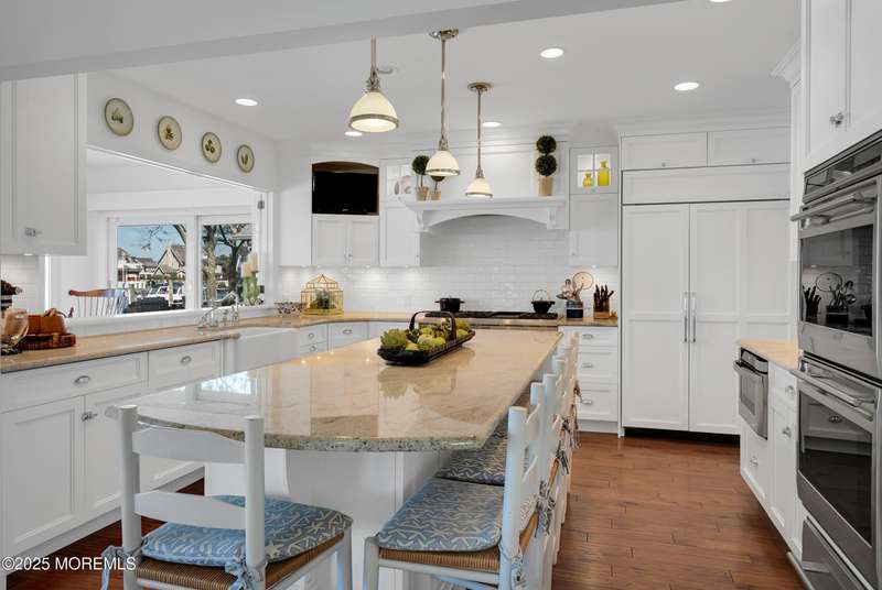 Welcome to a coastal masterpiece that offers bay and sunset views, a private dock (with room for boats large and small), and the best of indoor and outdoor living. Enjoy sun-soaked afternoons on the waterfront deck, entertaining in the gourmet kitchen, as well as the peace and quiet of the primary suite with its secluded balcony. With timeless architectural details, premium finishes, and private, guarded ''South Beach'' a short walk away, this home offers the relaxed charm of coastal living. Conveniently located between the centers of Mantoloking and Bay Head, to enjoy all that those towns have to offer.