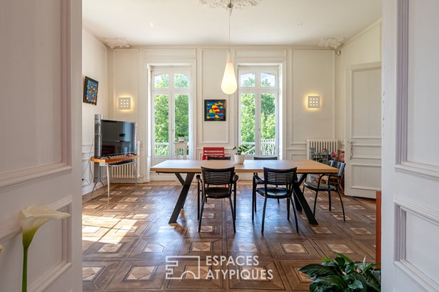 This castle, built around 1871, a memory of a noble and authentic past, stands proudly in the heart of Brittany, a stone's throw from the historic town of Landerneau, 20 minutes from Brest and 30 minutes from the magnificent white sandy beaches. A heritage jewel of 350m2 nestled in a green setting of nearly 1.9 hectares, which unfolds its volumes with grace, between woodwork, old rosettes and monumental fireplace. At the bend of a tree-lined path with breathtaking views of the valley, an estate is revealed, almost timidly. From the entrance, the charm operates with a beautiful, sober and bright crossing gallery where the gaze is naturally guided by a masterful staircase. A small adjoining room, discreet but practical, designed as a cloakroom completes this first contact with the place. On the left, the doors open onto a large living room bathed in light with generous volumes and high windows overlooking the park and letting in the seasons. The atmosphere is warm and elegant thanks to a characterful fireplace and pretty woodwork. In the extension, the dining room asserts its character with its ceiling rosettes, delicate witnesses of the refinement of the 19th century. Then comes the kitchen, equipped and fitted, full of potential. It is bright, facing the garden, and opens onto a small wrought iron balcony which calls for the morning coffee. A discreet hallway leads to a sleeping area on one level, including a bedroom and a bathroom with toilet The staircase leads to the first floor, where the atmosphere is more intimate. Four generous bedrooms share this floor, each with its own personality: One offers the comfort of a private bathroom, ideal for guests or older children Another, nestled in the central turret, houses a bathroom with a bathtub offering a breathtaking view of the park, a rare and sweet luxury, between sky and foliage. The fourth bedroom, flanked by a discreet turret, reveals a secret undeveloped corner, like an alcove to be invented, a poetic refuge or suspended reading corner. In addition, there is an office, perfect for teleworking or writing daydreams, as well as a third bathroom on the landing, perfectly located to serve the other bedrooms. The second floor offers 100 sqm to be fitted out where the volumes are waiting to be revealed according to your desires: reception area, additional suites, artist's studio, wellness area or private loft: A stone basement completes the whole with different spaces such as a wine cellar, endive cellar, workshop, laundry room: A rare place steeped in history, this castle embodies a unique art of living between the cobbled streets of the Breton town of Landerneau, the murmur of nature and the salty breath of the nearby sea. ENERGY CLASS: C / CLIMATE CLASS: A Estimated average amount of annual energy expenditure for standard use, established from energy prices for the year 2021 to 2023: between EUR2,550 and EUR3,510. Information on the risks to which this property is exposed is available on the Georisques website: https://www.georisques.gouv.fr Contact: Vanessa at 06 68 88 52 09 Real estate sales agent registered with RSAC n° 927 749 697 BREST. Agency fees: 5% including tax payable by the seller for properties over EUR200,000 Fixed fee of EUR10,000 including tax payable by the seller for properties under EUR200,000.