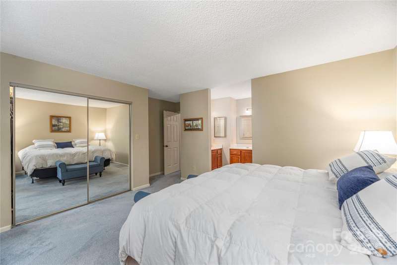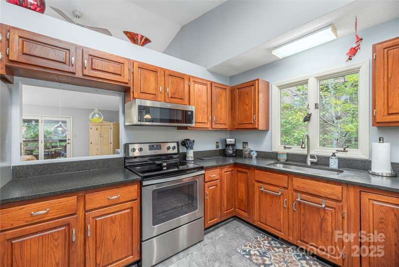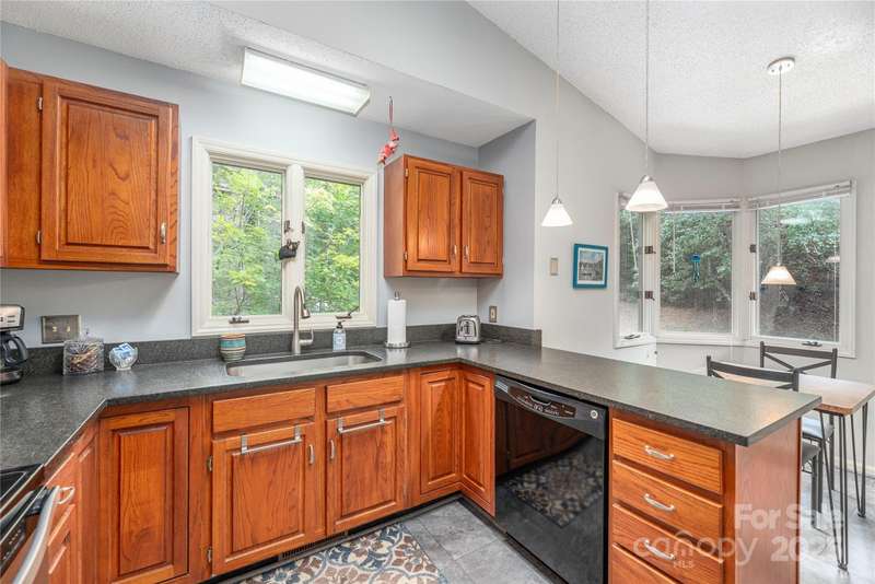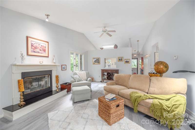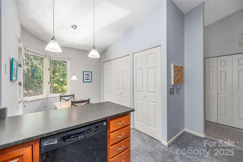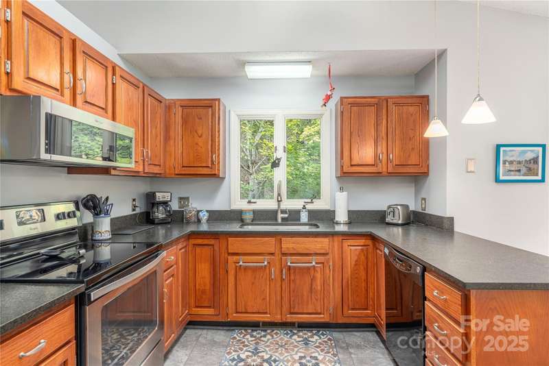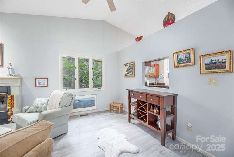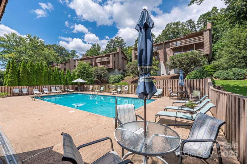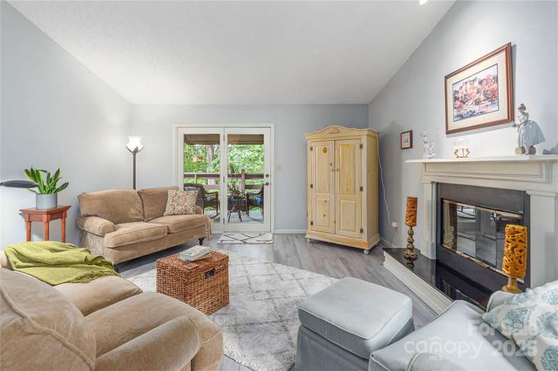 Located in the top row at the Pine Cliff Condominiums, this inviting 2-bedroom, 2-bath upper-level unit offers the perfect blend of seasonal charm and year-round comfort. In winter, enjoy long-range views; in summer, the surrounding canopy creates a private, treehouse-like retreat. The vaulted ceiling and wood-burning fireplace add warmth and character to the open living area, while the Pro Core Plus Charleston Oak LVP flooring gives stylish appeal. The eat-in kitchen boasts high-end Whirlpool stainless steel appliances, Maytag washer and dryer, and black "pearl leather" granite countertops. The residents also enjoy access to the community pool, making this a perfect full-time home or mountain getaway.