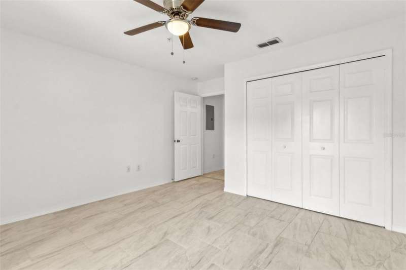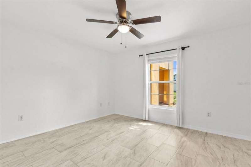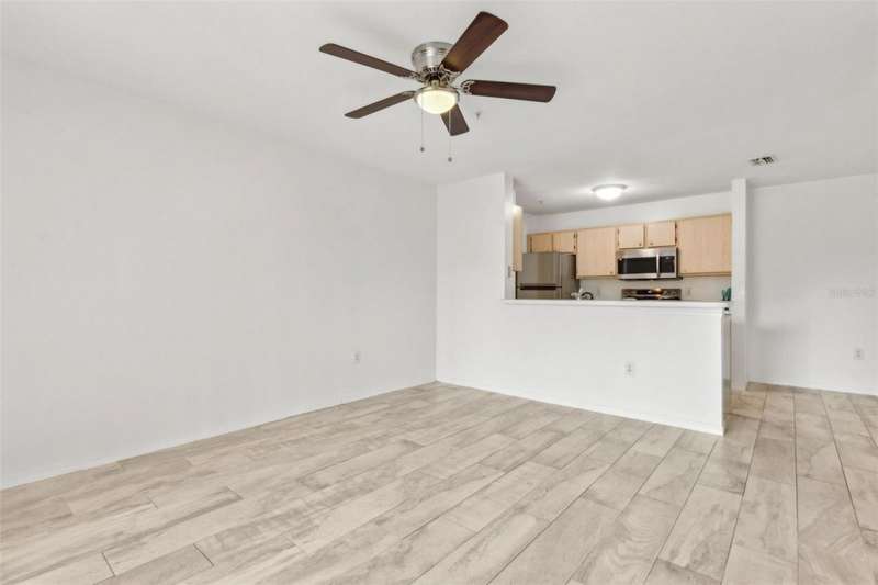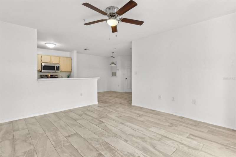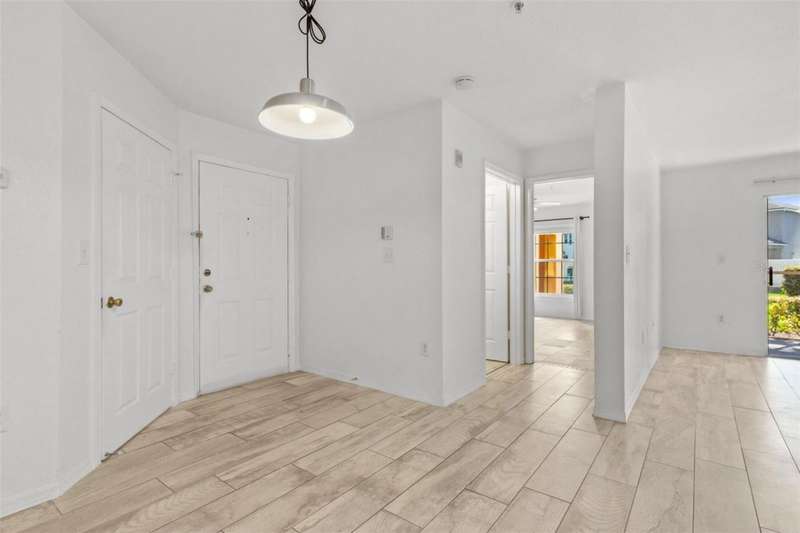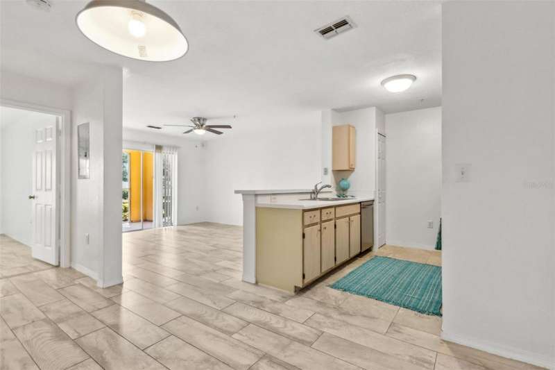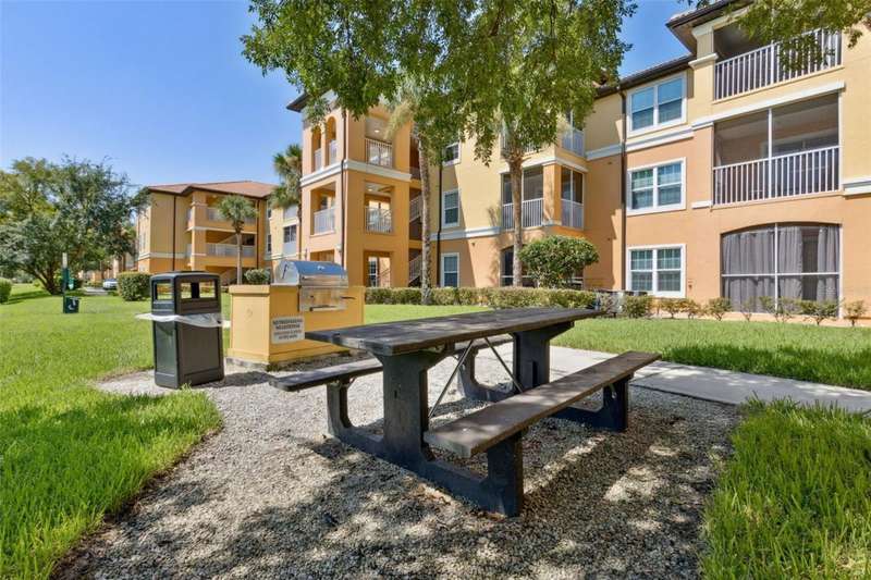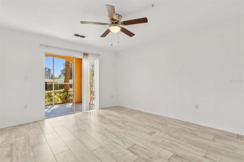 Move-in ready, first-floor 1-bed/1-bath condo in the gated Cypress Fairway community in the Millenia area, offering 734 sq ft. This bright, open floorplan features ceramic tile throughout (no carpet), neutral paint, upgraded ceiling fans, and new energy-efficient windows and insulation. The kitchen includes new stainless steel appliances, cabinets with hardware, and a breakfast bar that opens into the living/dining area. Glass sliders in the living room lead to a covered screened patio-an ideal spot for morning coffee or relaxing evenings. The bedroom is tucked away for privacy and includes a large window for natural light. The full bath is equipped with a tub/shower combo and single-sink vanity. Utility space with washer, dryer, and water heater offers additional storage. Significant community & structural upgrades have been addressed: stucco redone, exterior repaint, new insulation, and a roof replacement in 2022 (by the association). One assigned parking spot is included; abundant guest parking is available. Community amenities include a recreation center, gym, pool, tennis courts, walking trails, picnic areas and grills, all within the gated grounds. Situated close to I-4, the Mall at Millenia, major highways, and Orlando's theme parks, this condo is ideal for a primary residence or investment.