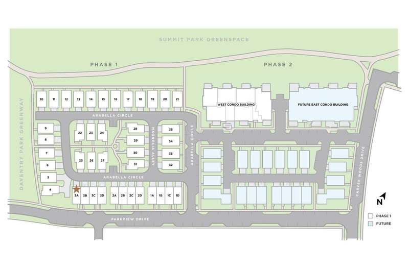 Last available attached townhome building in Phase I of Arabella at Summit Park. End unit with an abundance of natural light. 2425 SQ FT featuring custom finishes - Thermador appliances, quartz countertops, site finished Hardwood floors, solid core doors, smart home system, optional elevator and more. Home to be completed by Spring, 2026.