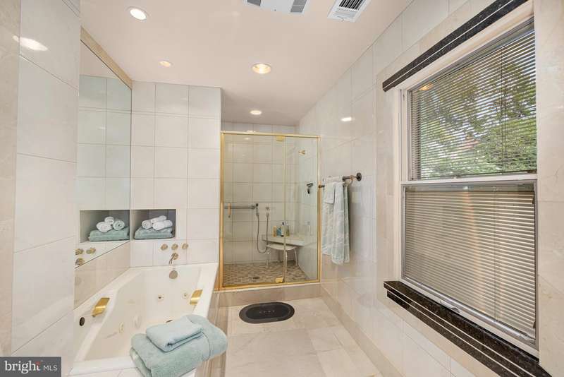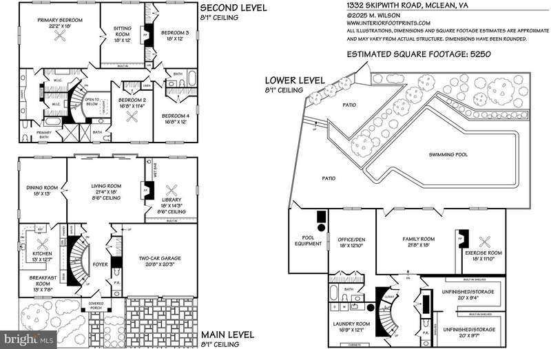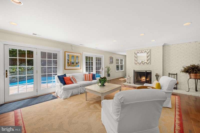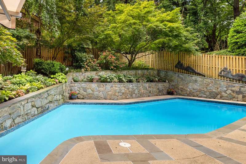Exceptional and extra-special end unit in Merrywood on the Potomac features four sides of windows, 2-car main level entry garage, and private POOL! Main level features elegant foyer with curved stairway, garage access, powder room, and 2 coat closets plus spacious living room with fireplace and adjoining library, elegant dining room, and large kitchen with breakfast area. Upstairs are four bedrooms and three full bathrooms including an expansive primary suite with fireplace, separate study, 2 walk-in closets, and generous en suite bath/dressing area. Lower level features large rec/family room with fireplace and walkout to pool with surrounding patios and terraced gardens, powder room, bedroom/office, full bathroom, gym (optional 6th bedroom), laundry room, and huge storage room. Dream location just minutes from DC/Chain Bridge in serene community with park-like setting and tennis/pickleball courts! Stacked closets designed to accommodate elevator. *Community is a Condo Association, all units are houses!*