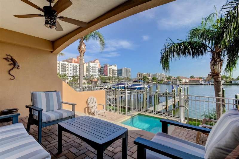 STUNNING FULLY FURNISHED WATERFRONT Townhome in the heart of Clearwater Beach. Spacious 3 bedroom plus bonus room (4th bedroom) 3.5 bath with a 2 car garage, Private Boat Slip, Elevator, Roof Top Terrace and Private heated dipping pool. Enjoy breathtaking waterviews and amazing sunsets from your upper level lounging terrace and balconies.This beautiful luxury residence is fully equipped with all the comforts of home. Located a short walk away from the famous sugar sand beaches of Clearwater,voted # 1 Beach and nearby shopping ,restaurants, Pier 60 , Fishing, Clearwater Beach Aquarium, the New Sound Waterfront Amphitheater, local attractions and much more! Come experience the Coastal life this winter in the Florida sunshine.