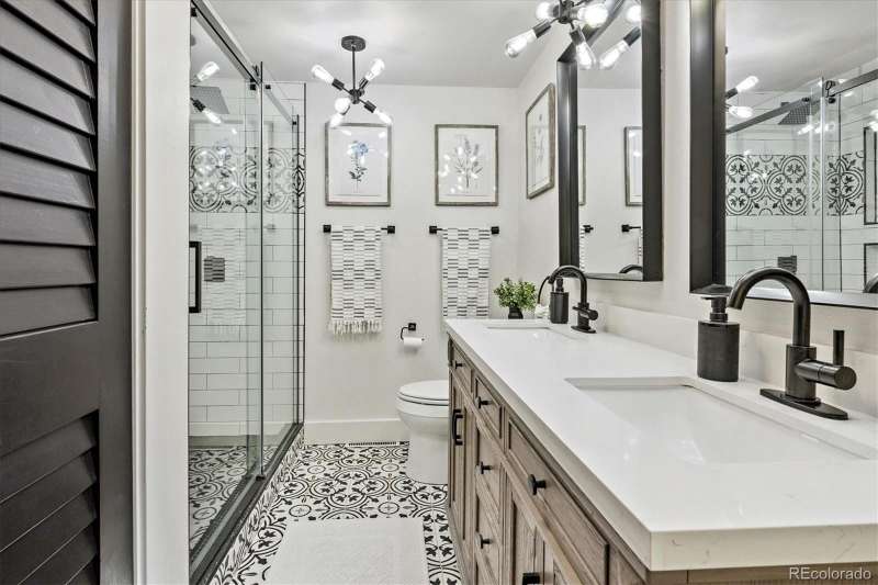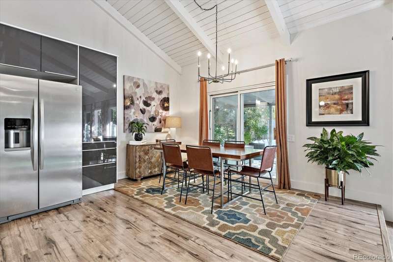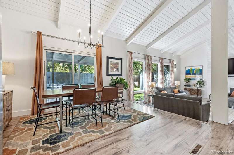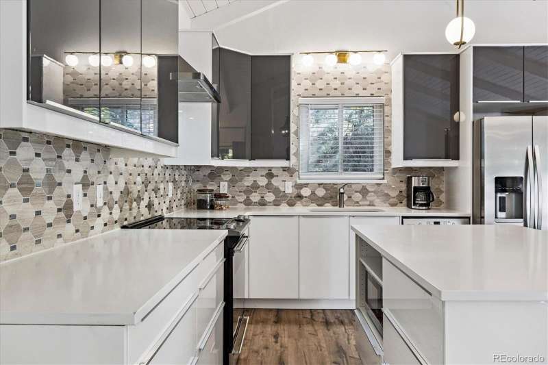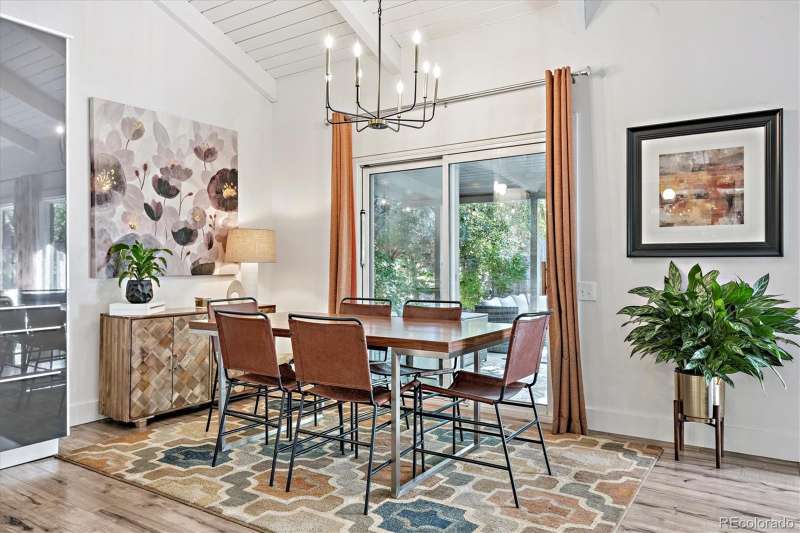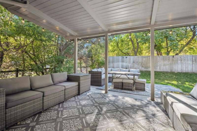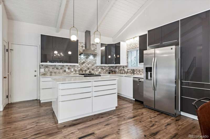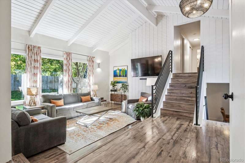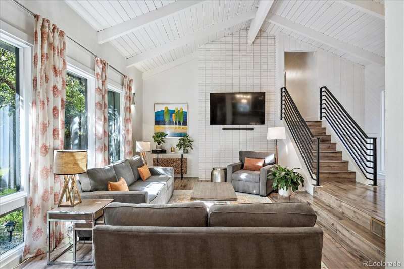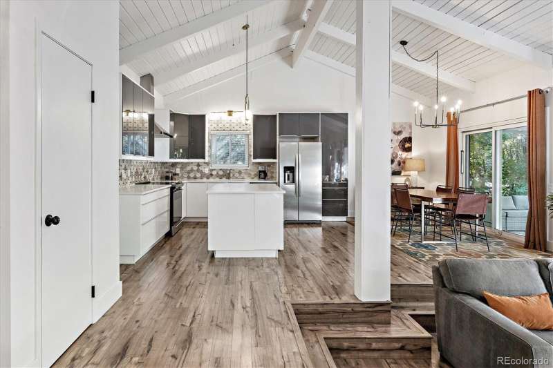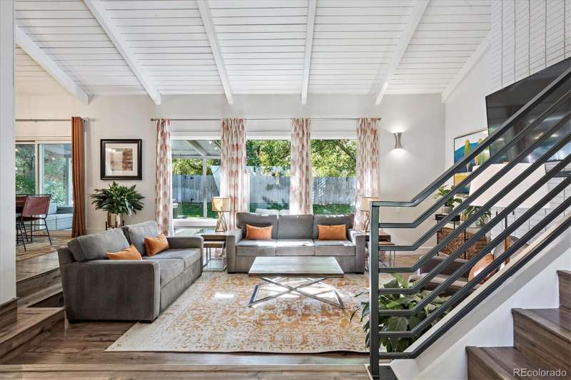 Mid-Century Modern Meets Modern Convenience in Park Forest. Park Forestan impressive and often-overlooked enclave of fine Denver homes, intersected by the scenic, 70+ mile Highline Canal Trail. Right out your back gate, enjoy easy access to one of Denvers most beloved pathwaysperfect for walking, running, or biking to explore the citys beauty. This striking Mid-Century Modern home has been tastefully remodeled to suit todays lifestyle, blending open-concept design with timeless architectural character. Step inside to soaring vaulted ceilings and a truly open floor plan. If you prefer small, chopped-up rooms and a closed-off feelthis isnt the home for you. Instead, the spacious kitchen serves as the heart of the home, featuring light quartz countertops, a large island, soft-close drawers, designer tile backsplash, and stainless-steel appliances. It flows seamlessly into the living and dining areas, creating multiple conversation spaces ideal for entertaining. Upstairs, youll find three bedrooms, including a generous primary suite with: A cozy wood-burning fireplace; Large windows overlooking the expansive backyard; Two closets; dual vanities with quartz counters; A remodeled, oversized shower. The lower level offers incredible versatility with: Garden-level/daylight windows; A second living space with another fireplace; A wet bar and fully remodeled bath; Laundry room and separate exterior entrancegreat for guests, home office, or potential rental flexibility. The backyard is designed for both relaxation and play, with a south-facing covered patio, mature landscaping, and a large grassy areaideal for BBQs, pets, or family fun. Other highlights include: New furnace and Central A/C; Brand-like new flooring & fresh interior paint; Dual vanities in two bathrooms; Attached two-car garage; Tree-lined lot with privacy and curb appeal. Take advantage of this rare opportunity to own a spacious, stylish, and well-located home in one of Denvers hidden gems.