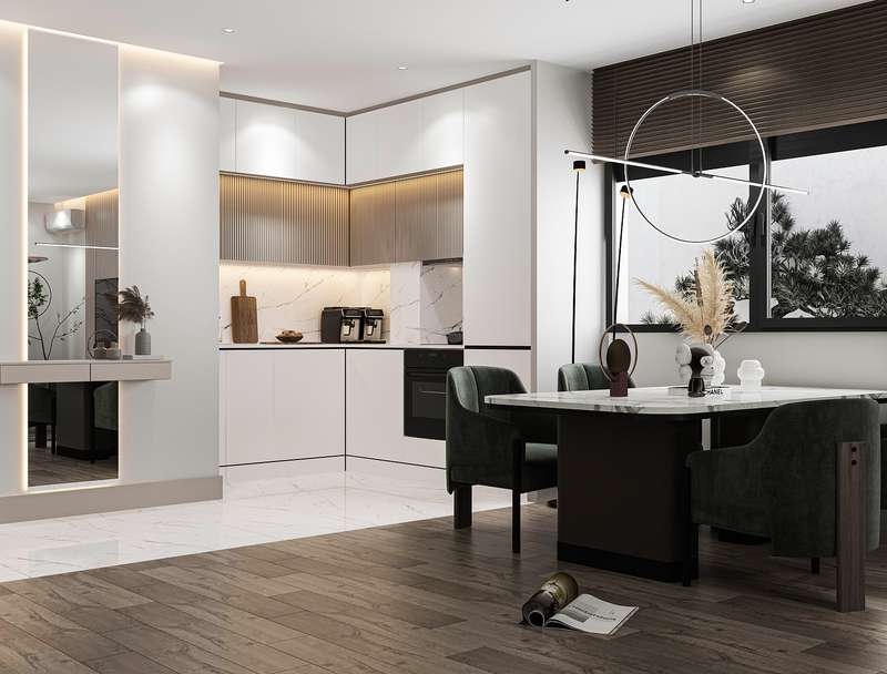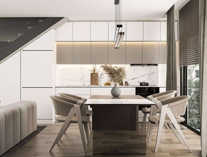 The 2-bedroom ground-floor apartments are in duplex layouts. They consist of a living room, an open-plan kitchen, 2 bedrooms, a master bathroom, and an additional bathroom. Meanwhile, the 4-bedroom duplex apartments consist of a living room, open-plan kitchen, 4 bedrooms, a master bathroom, 2 additional bathrooms, a balcony, and 2 terraces.