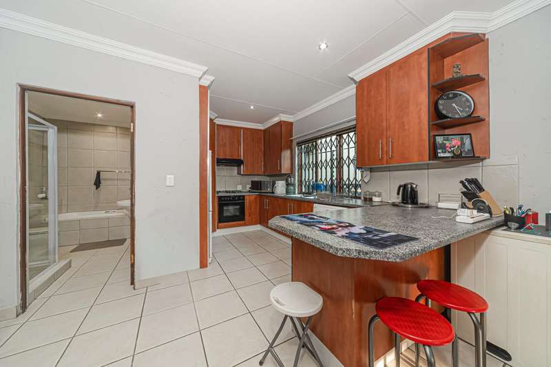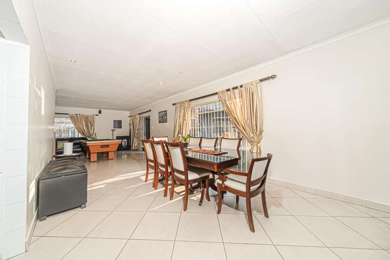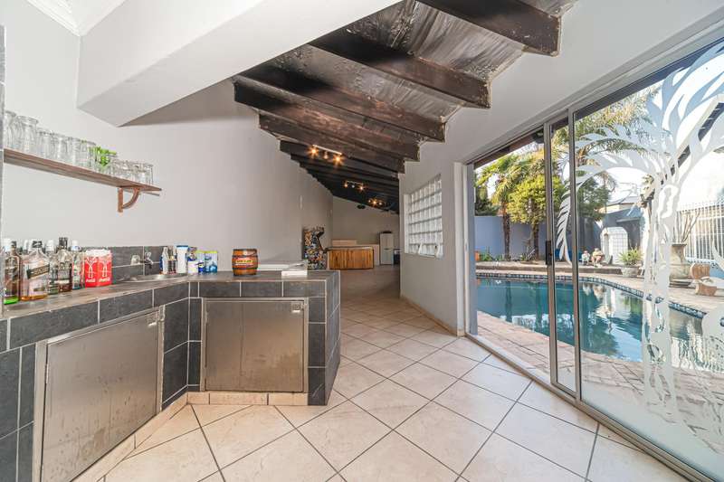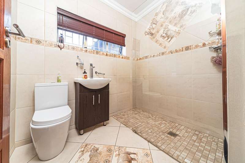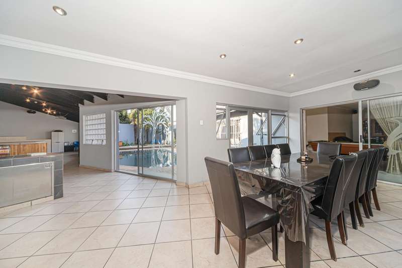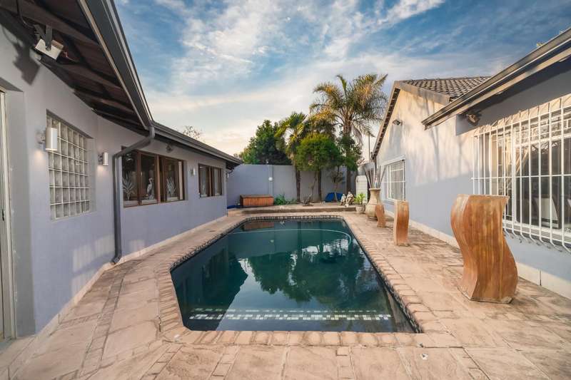 This beautifully maintained residence offers the perfect balance between modern practicality and family lifestyle. Featuring 4 spacious bedrooms and 2 bathrooms, the home is anchored by a granite-topped kitchen with breakfast nook, flowing seamlessly into the dining room, lounge, and TV room. At its heart lies an exceptional entertainment haven - a fully equipped braai area and jacuzzi that open directly onto a sparkling swimming pool, creating a private resort atmosphere. The layout is designed for both day-to-day comfort and hosting unforgettable gatherings. Adding to its appeal, the property includes a fully self-contained 2-bedroom cottage with kitchen and 2 bathrooms, currently generating R6,000 per month - an excellent income opportunity or ideal for extended family. Practicality is equally impressive, with a massive storeroom, garaging for 4 vehicles, and carports for 4 more. Sustainability meets security through a 2022-installed solar system with 16 panels and an inverter, ensuring uninterrupted living. This is a home that seamlessly blends lifestyle, investment, and self-sufficiency. More than just a residence, this is a complete family retreat ?Çö secure, self-sustaining, and designed for connection, comfort, and endless entertainment.
